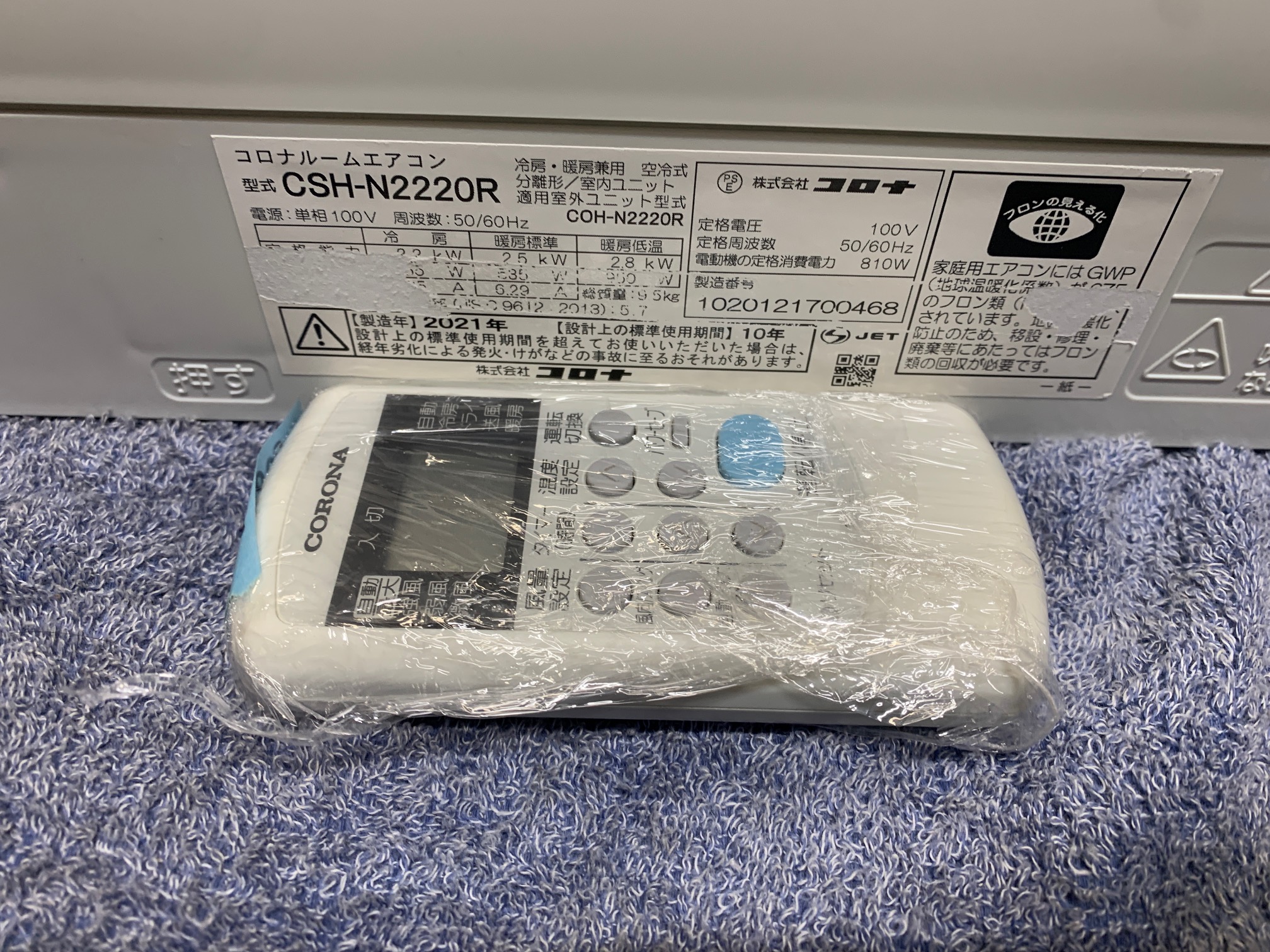 《売約》2.2KW冷暖エアコン 2021年製 コロナ CSH-N2220R ①(橋)