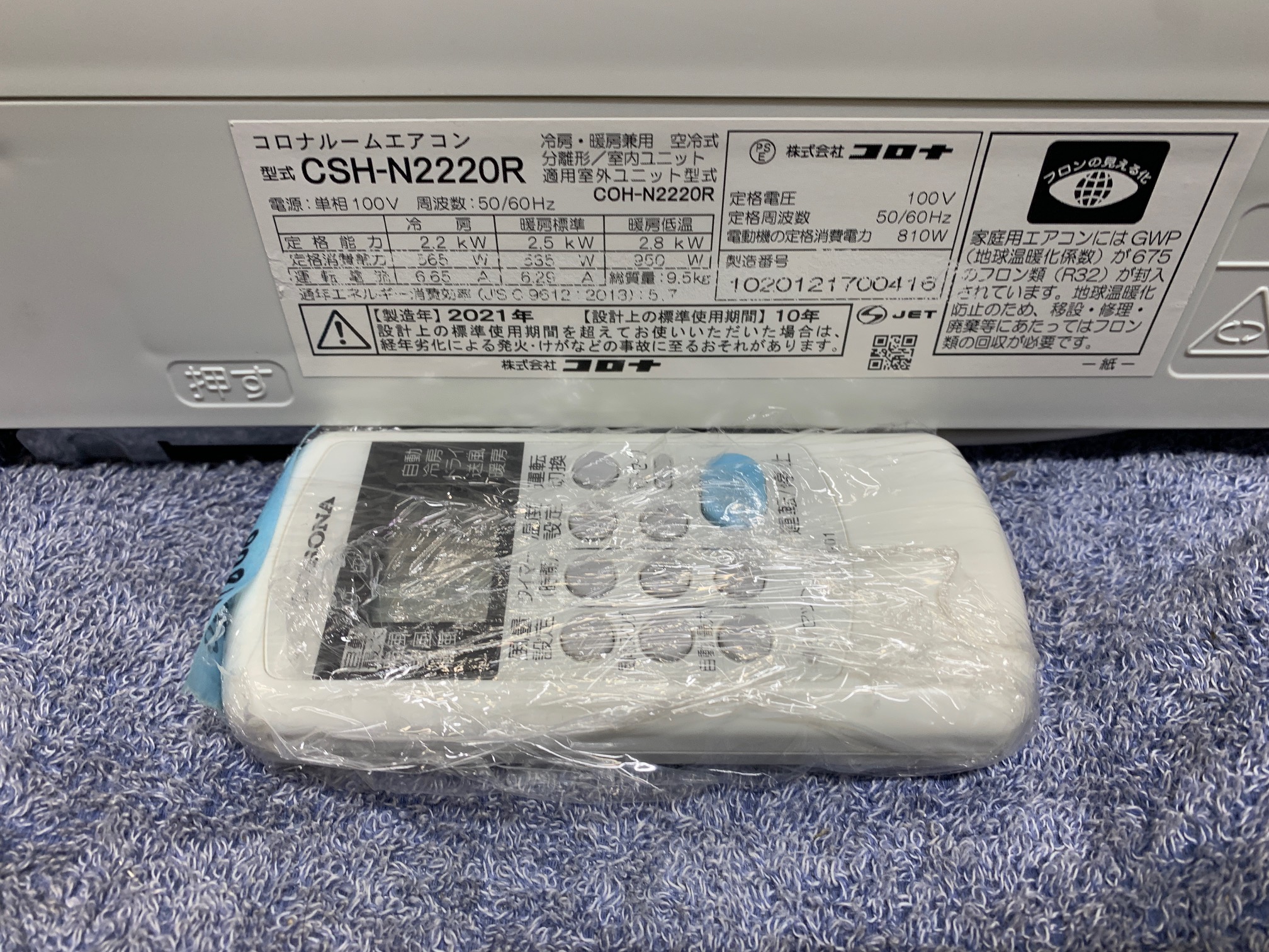 《売約》2.2KW冷暖エアコン 2021年製 コロナ CSH-N2220R ②(橋)(MSSN//)