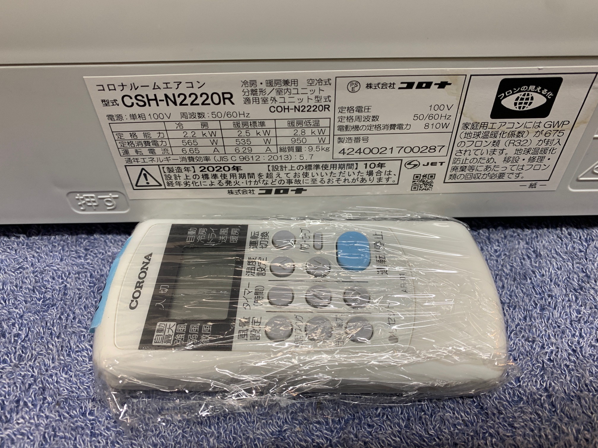 《売約》2.2KW冷暖エアコン 2020年製 コロナ CSH-N2220R(ED//IT)