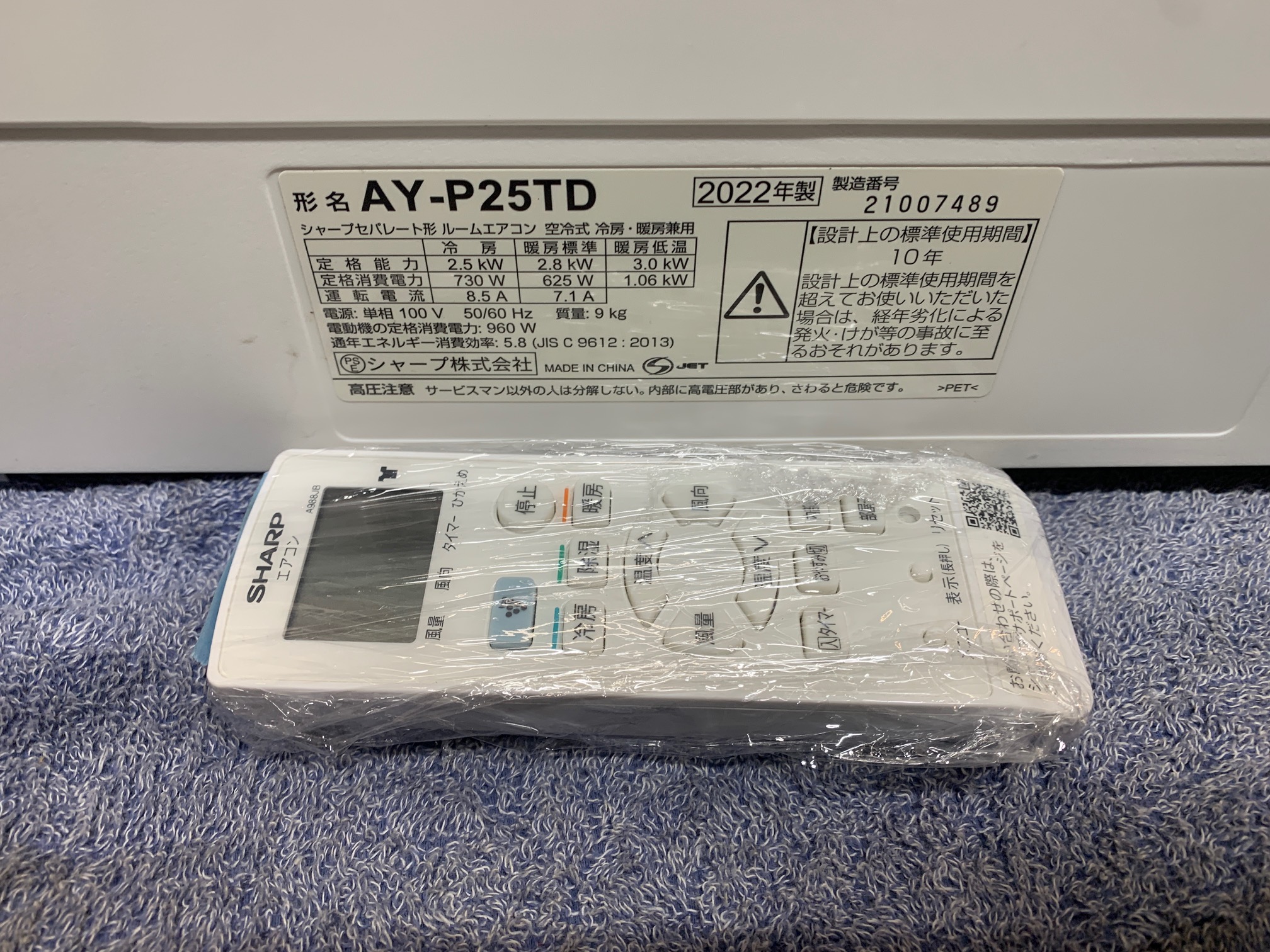 《売約》2.5KW冷暖エアコン 2022年製 シャープ AY-P25TD(ED③)