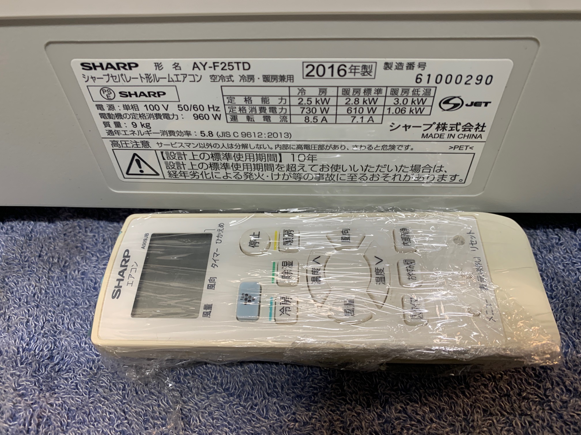 《売約》2.5KW冷暖エアコン 2016年製 シャープ AY-F25TD※リモコン色ヤケあり(江/ED/)