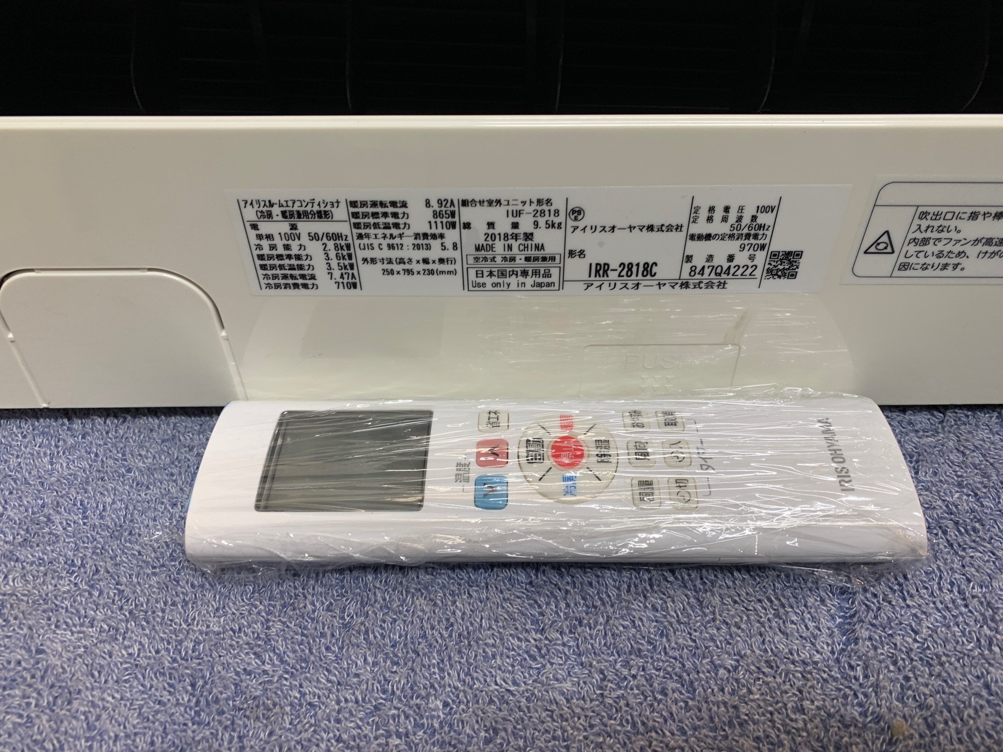 《売約》2.8KW冷暖エアコン 2018年製 アイリスオーヤマ IRR-2818C(KST//D)