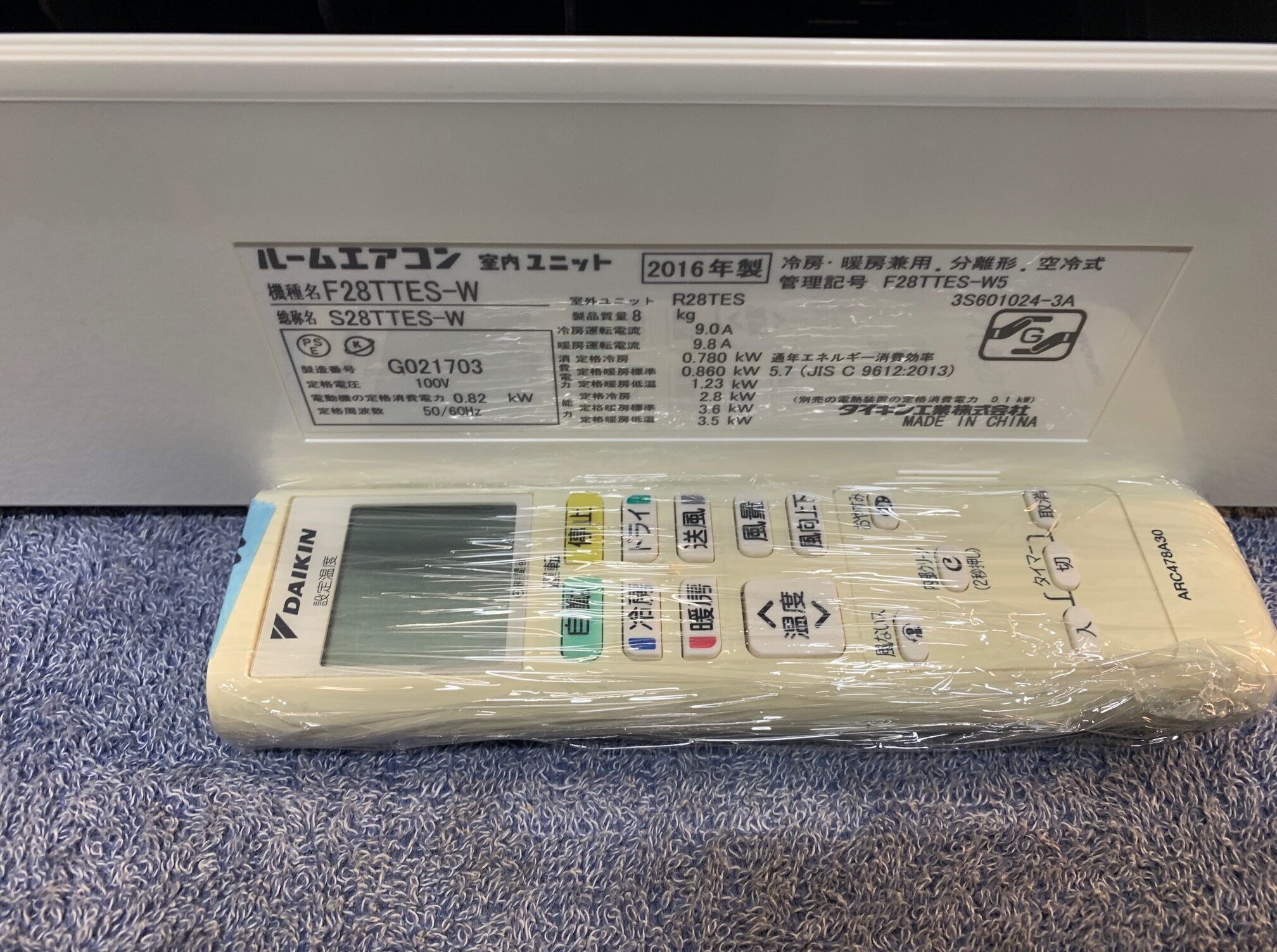 《売約》2.8KW冷暖エアコン 2016年製 ダイキンF28TTES※フィルターに小ヤブレ、リモコンに色ヤケあり