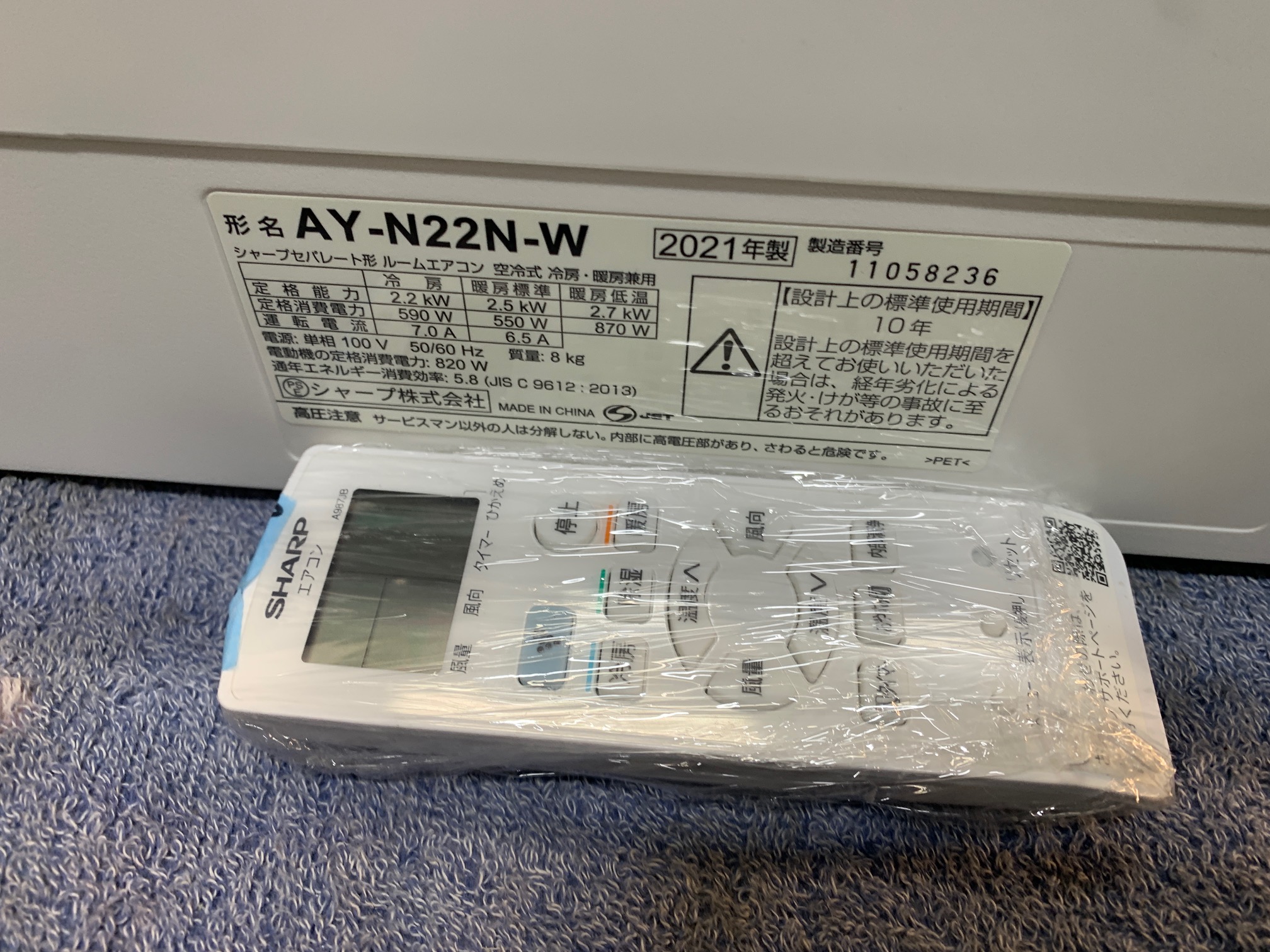 《売約》2.2KW冷暖エアコン 2021年製 シャープ AY-N22N☆プラズマクラスター(足/AYS/HRH)(TSM/OOST/SY)