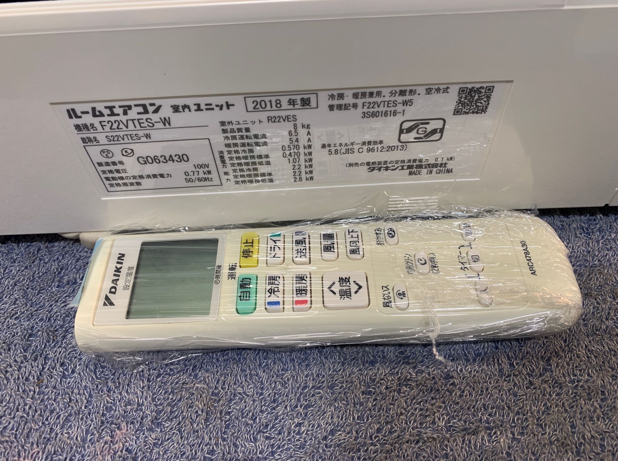 《売約》2.2KW冷暖エアコン 2018年製 ダイキン F22VTES①※少し色ヤケあり(北/TBT/MKM)