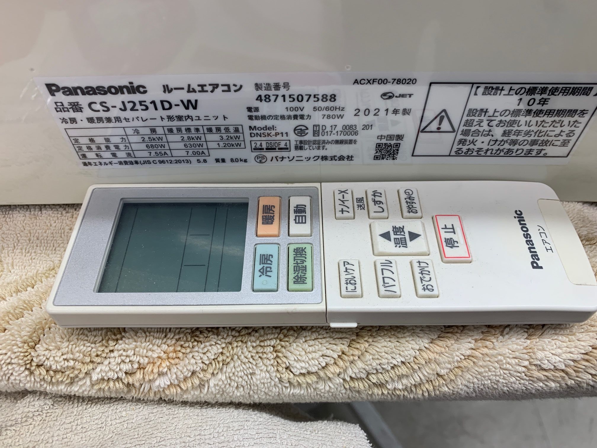 《売約》2.5KW冷暖エアコン 2021年製 パナソニック CS-J251D☆使用歴浅 ナノイーX 無線LAN搭載【入ム】(調//MYM①))