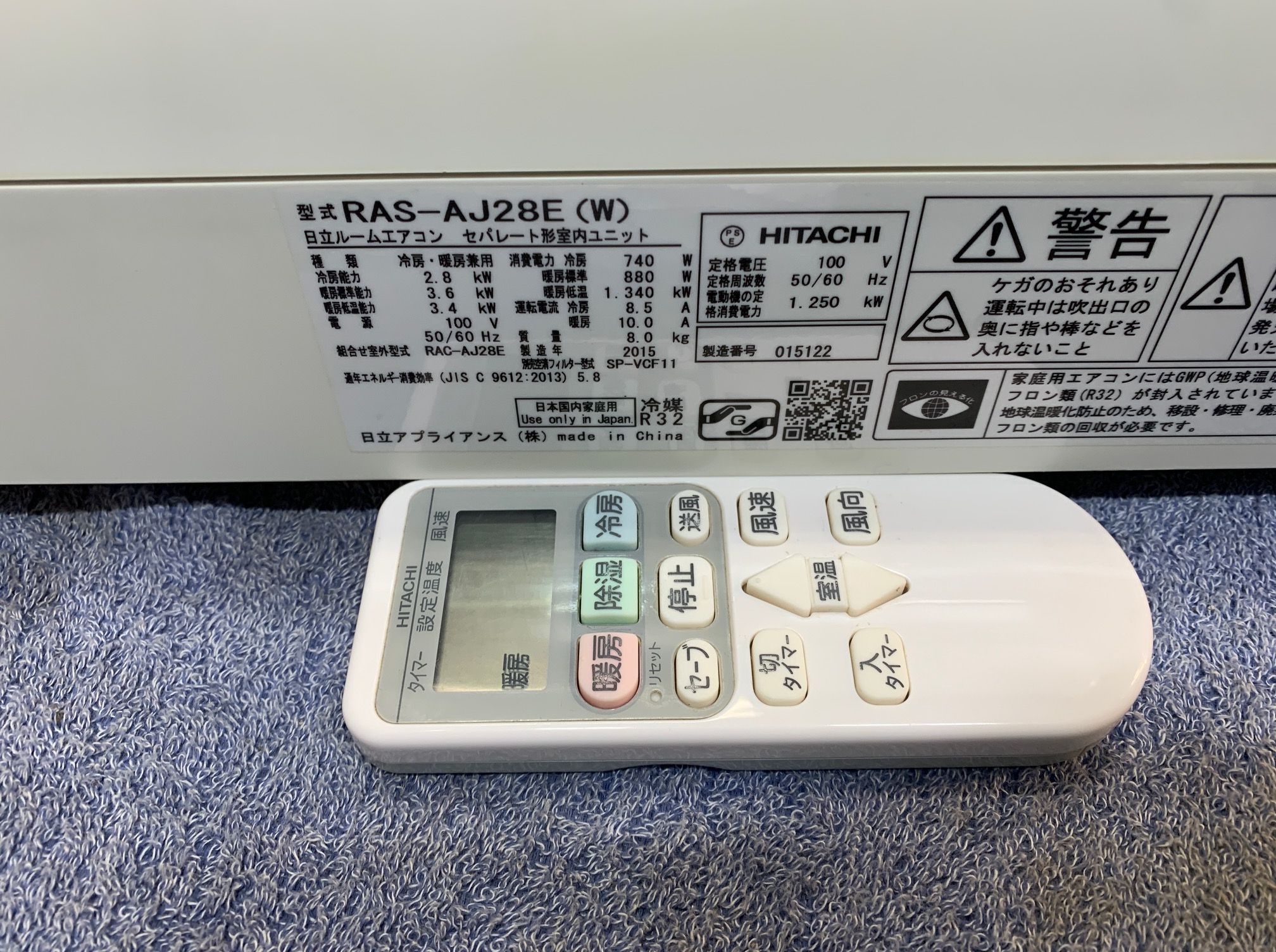 2.8KW冷暖エアコン 2015年製 日立 38,000円(41,800円税込)RAS-AJ28E※喫煙環境・使用感あり