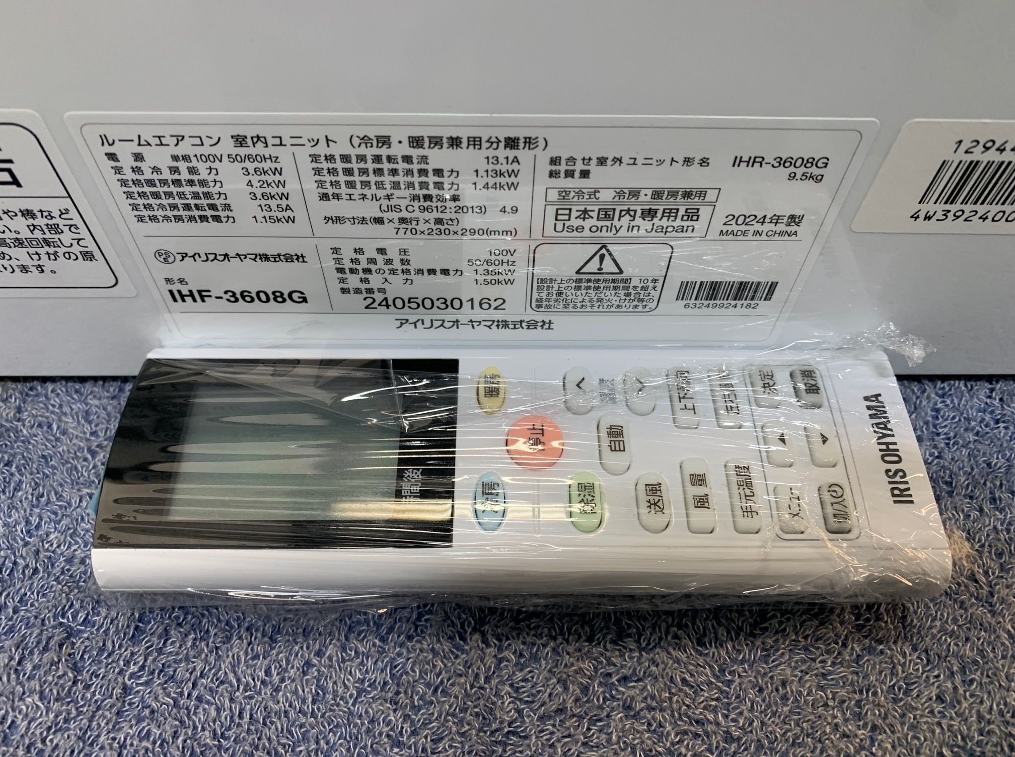 《売約》3.6KW冷暖エアコン 2024年製 アイリスオーヤマ IHF-3608G☆使用歴浅 100V IL(江/MSTMT/OKT)