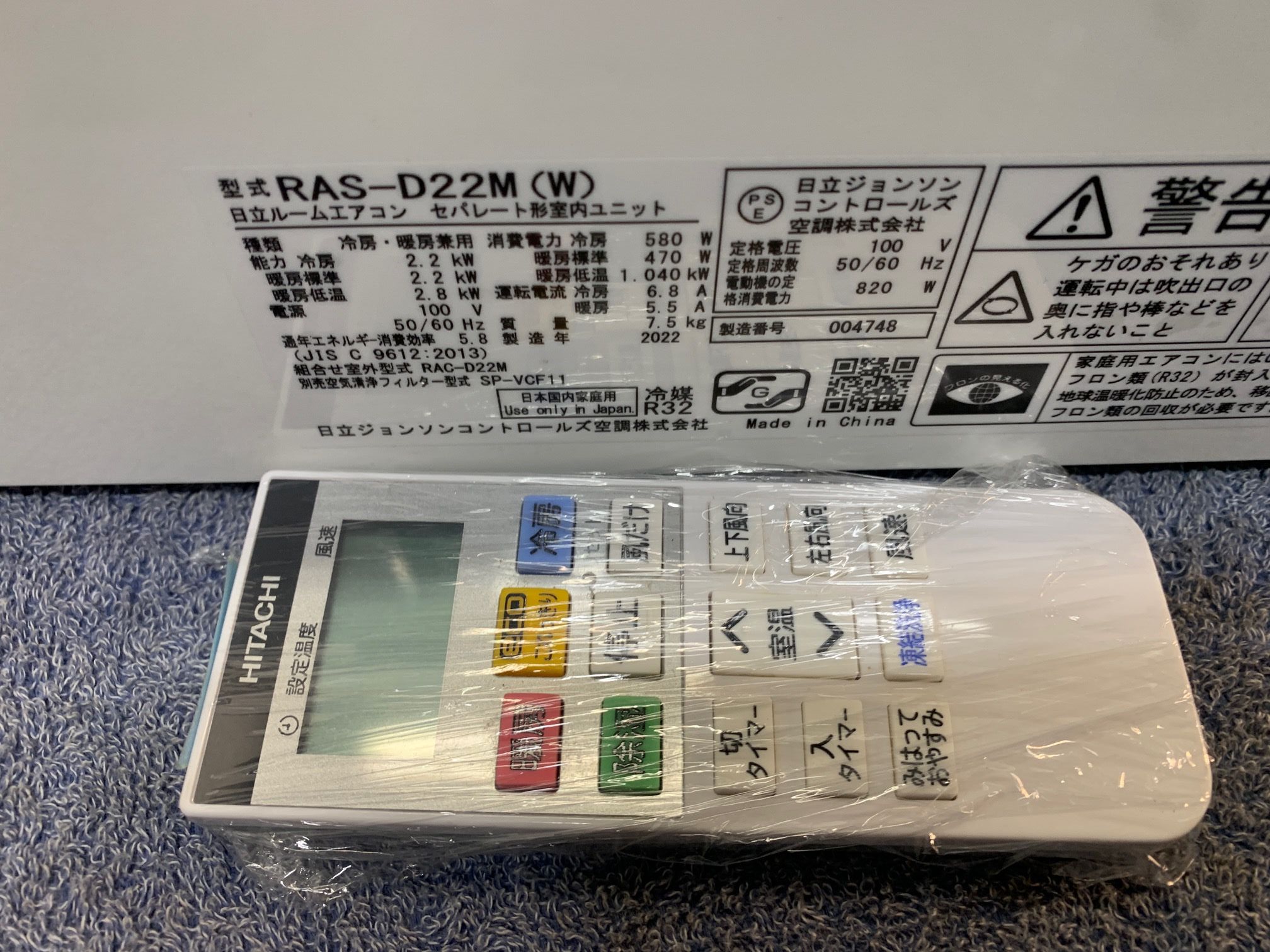 《売約》2.2KW冷暖エアコン 2022年製 日立 RAS-D22M☆ステンレス白くまくん(足/TTN/KTTN)