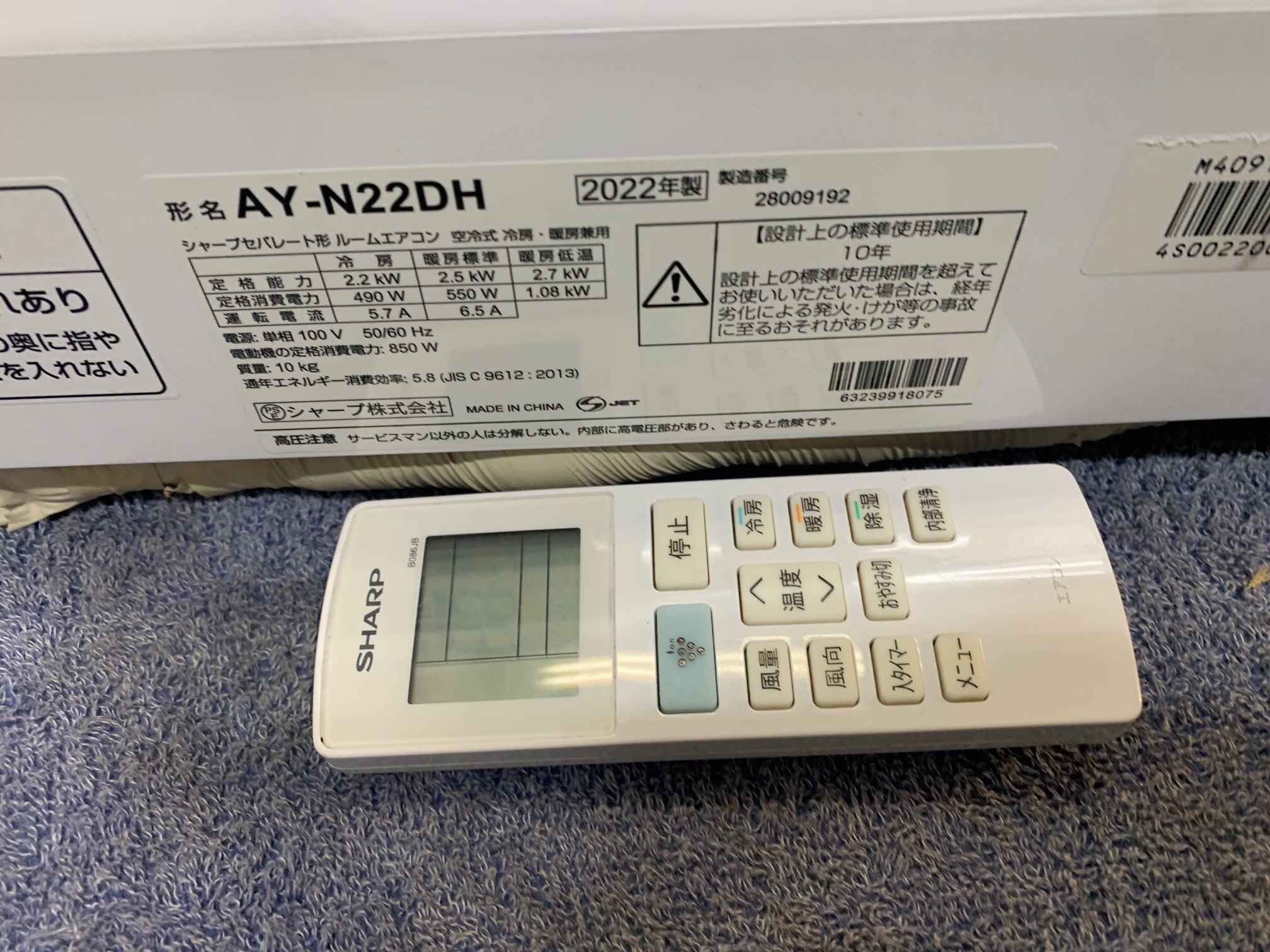 《売約》2.2KW冷暖エアコン 2022年製 シャープ AY-N22DH☆プラズマクラスター(調/STSTJGK/KSK①)