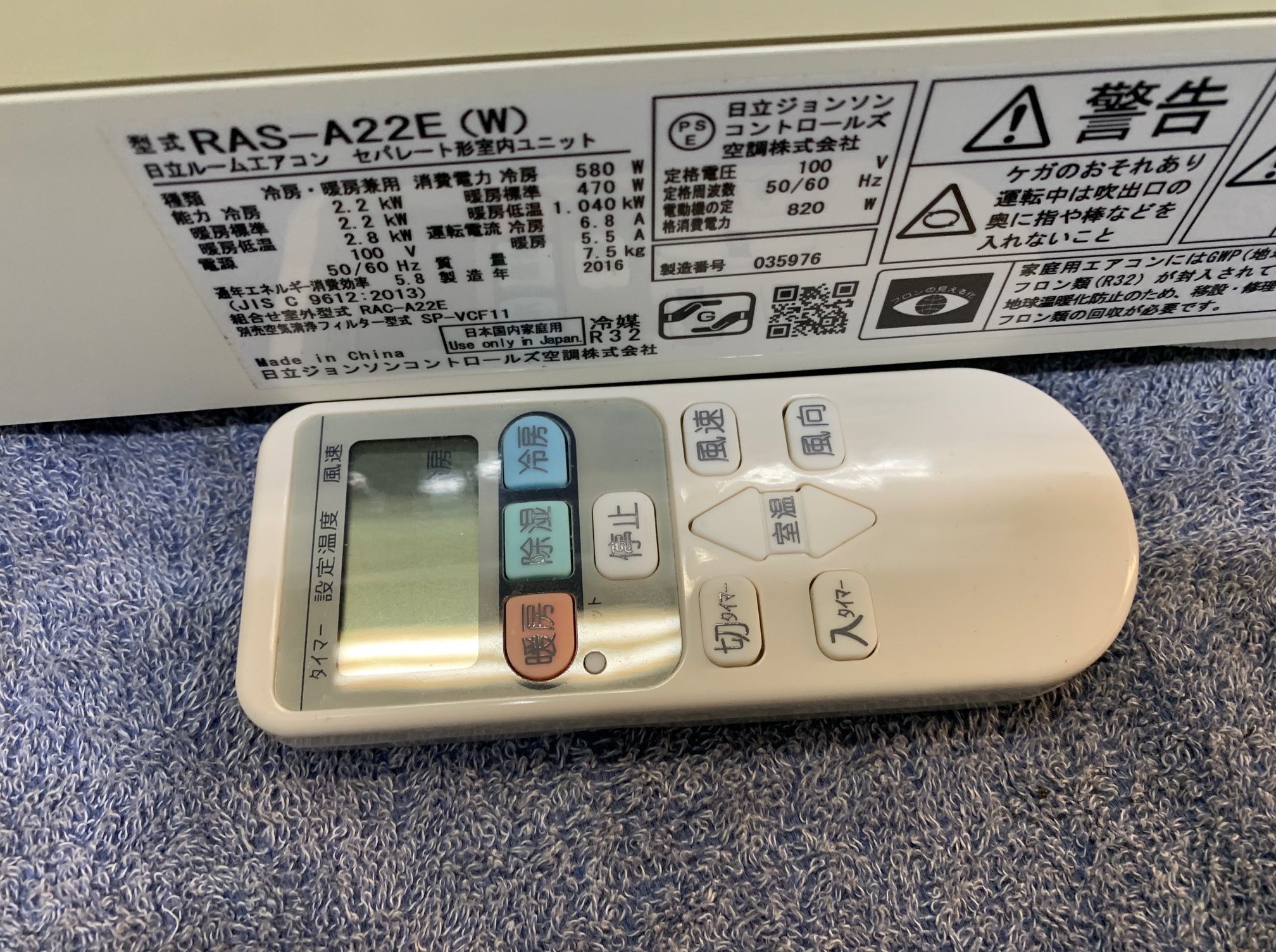 《売約》2.2KW冷暖エアコン 2016年製 日立 RAS-A22E※使用感あり・色ヤケあり