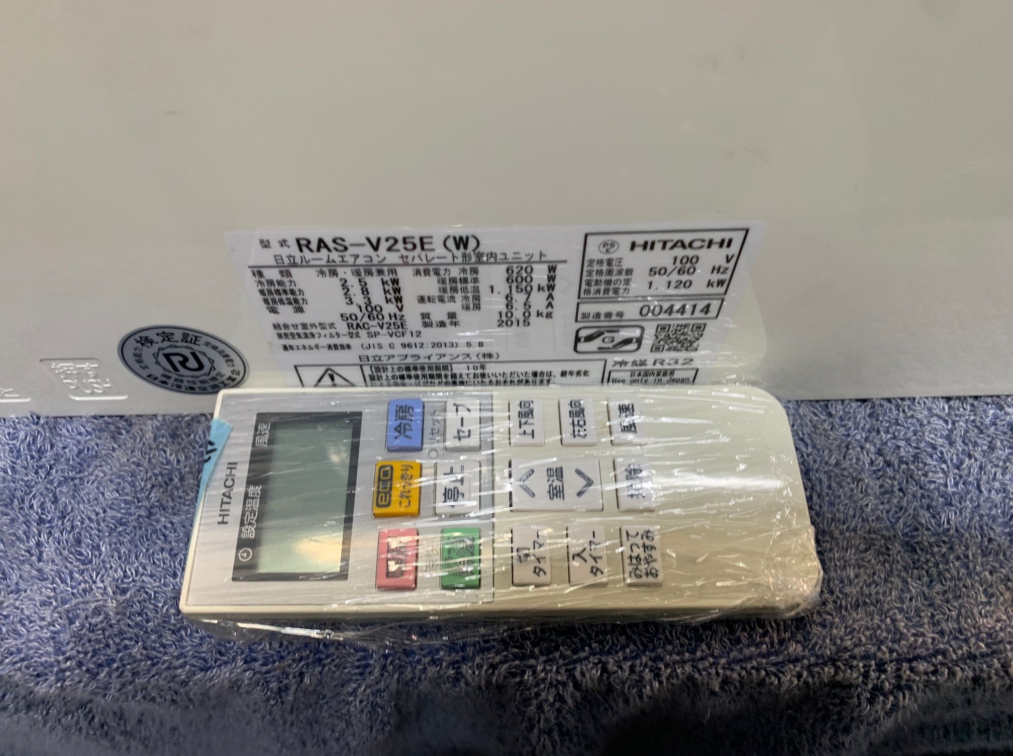 2.5KW冷暖エアコン 2015年製 日立 35,000円(38,500円税込)RAS-V25E ☆ステレス白くまくん 自動フィルターお掃除機能<ム⇒リ>