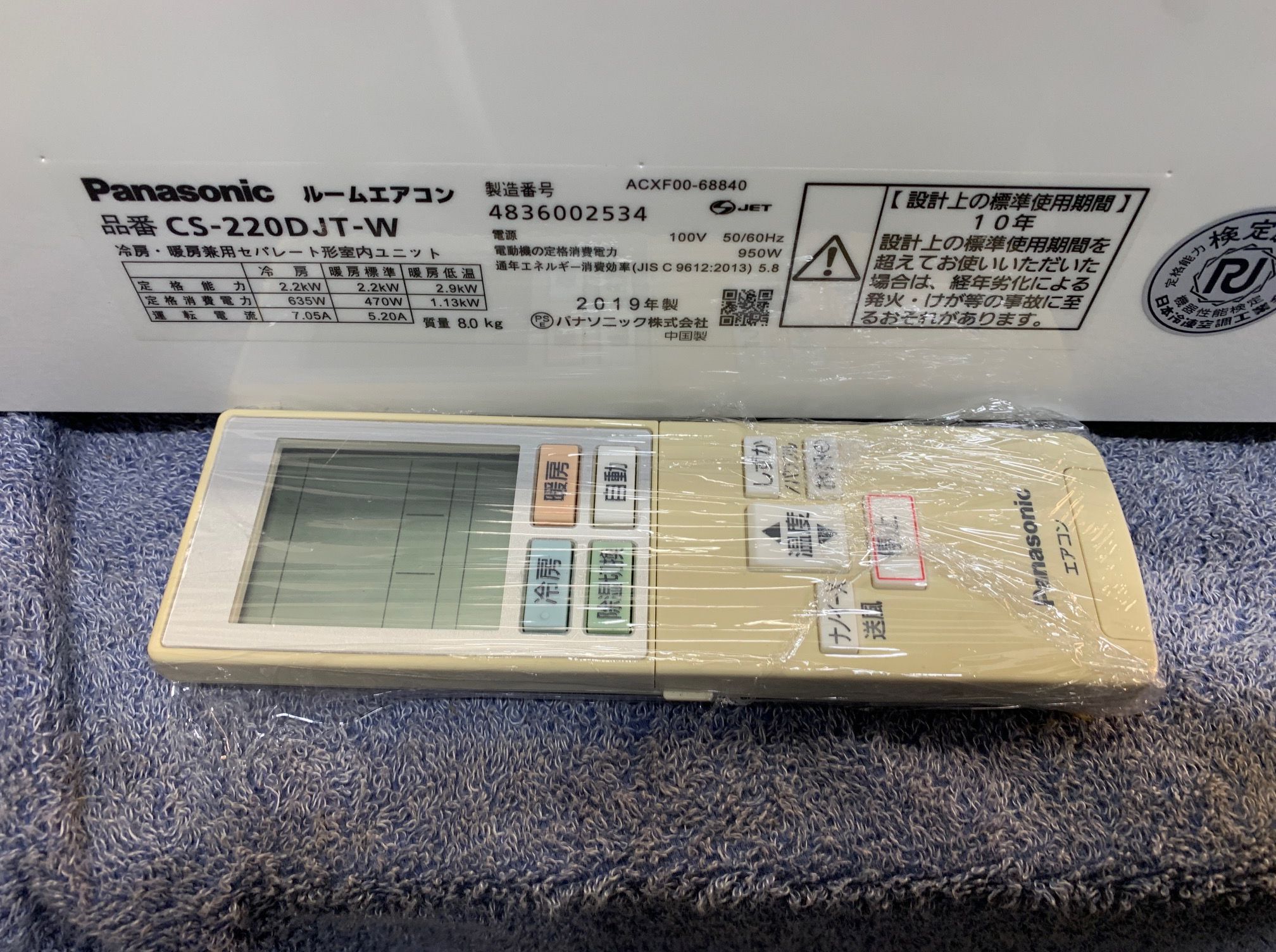 《売約》2.2KW冷暖エアコン 2019年製 パナソニック CS-220DJT※リモコン色ヤケ ☆ナノイーX②(新/IKSNJK/FKペイ)