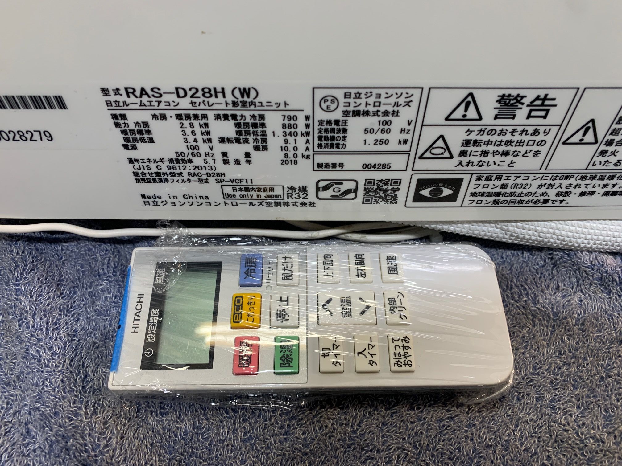 《売約》2.8KW冷暖エアコン 2018年製 日立 RAS-D28H☆ステンレス白くまくん(品//HRYM①)