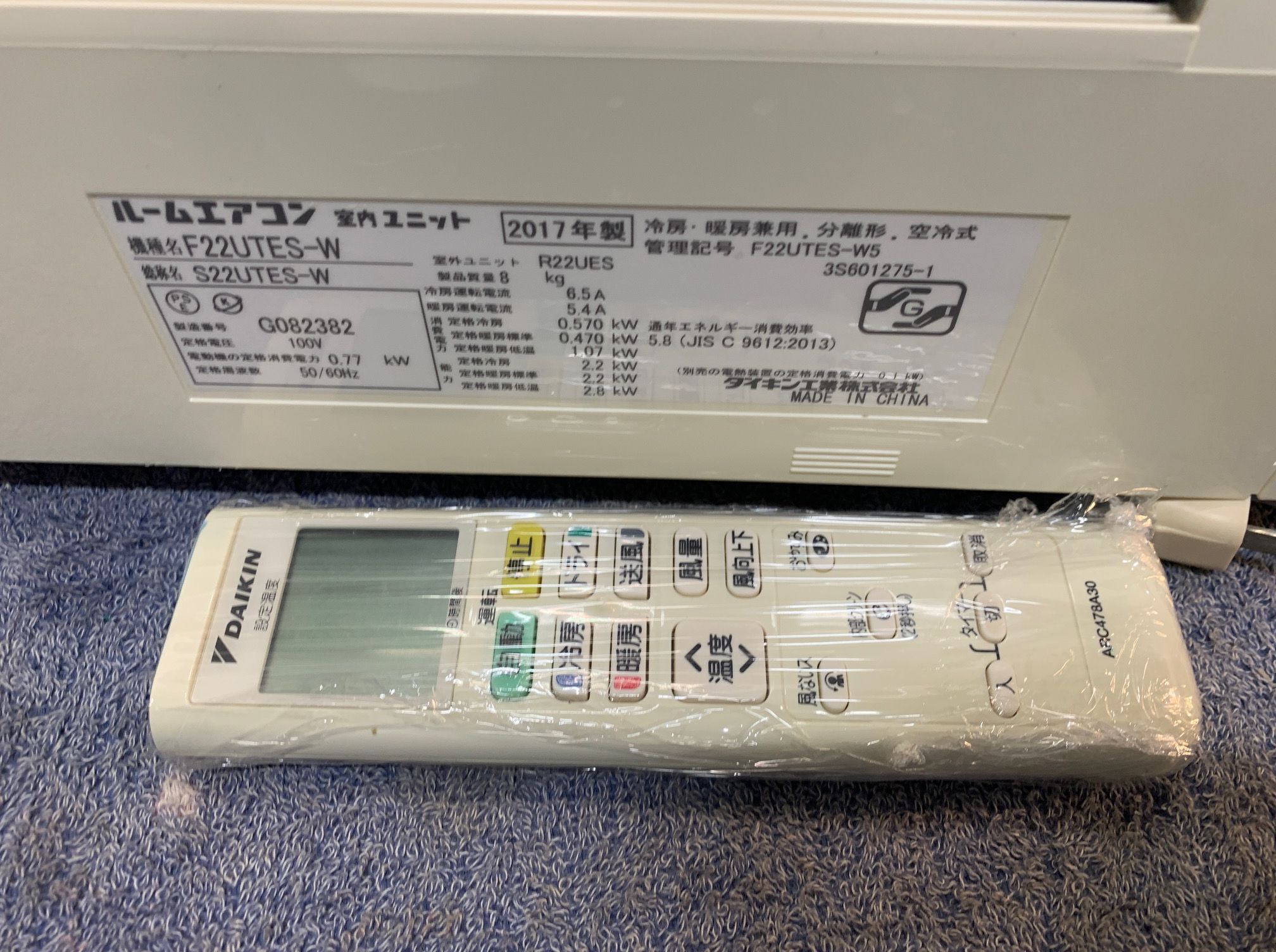 《売約》2.2KW冷暖エアコン 2017年製 ダイキン F22UTES※内機色ヤケあり・外機上部ハガレあり