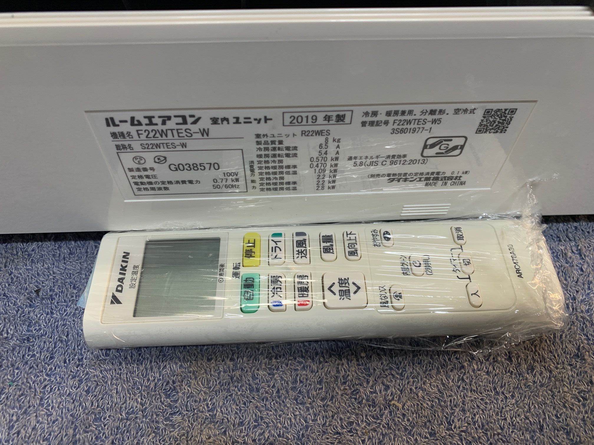 《売約》2.2KW冷暖エアコン 2019年製 ダイキン F22WTES(江//INGC)