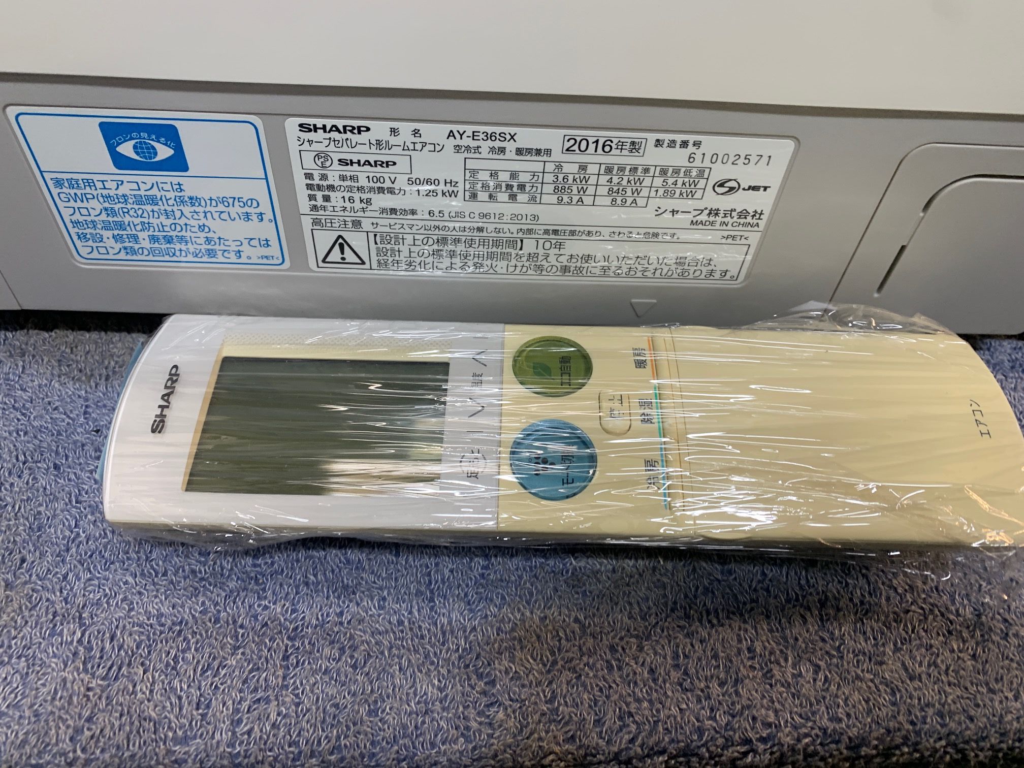 《ご予約》3.6KW冷暖エアコン 2016年製 シャープ 38,000円(41,800円税込)AY-E36SX※色ヤケあり ☆プラズマクラスター 100V IL(柏//)