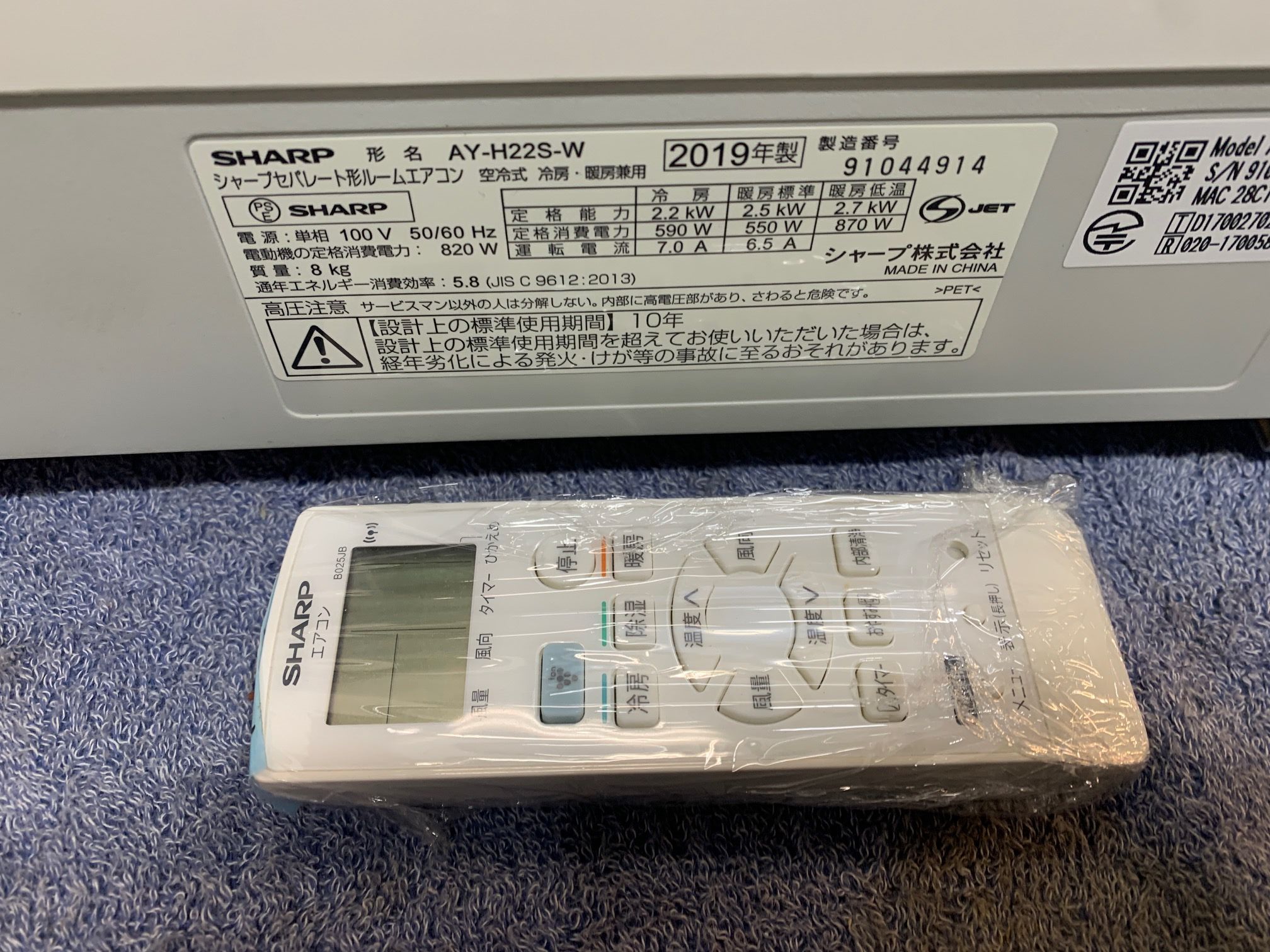 2.2KW冷暖エアコン 2019年製 シャープ 31,000円(34,100円税込)AY-H22S☆プラズマクラスター Wi-Fi