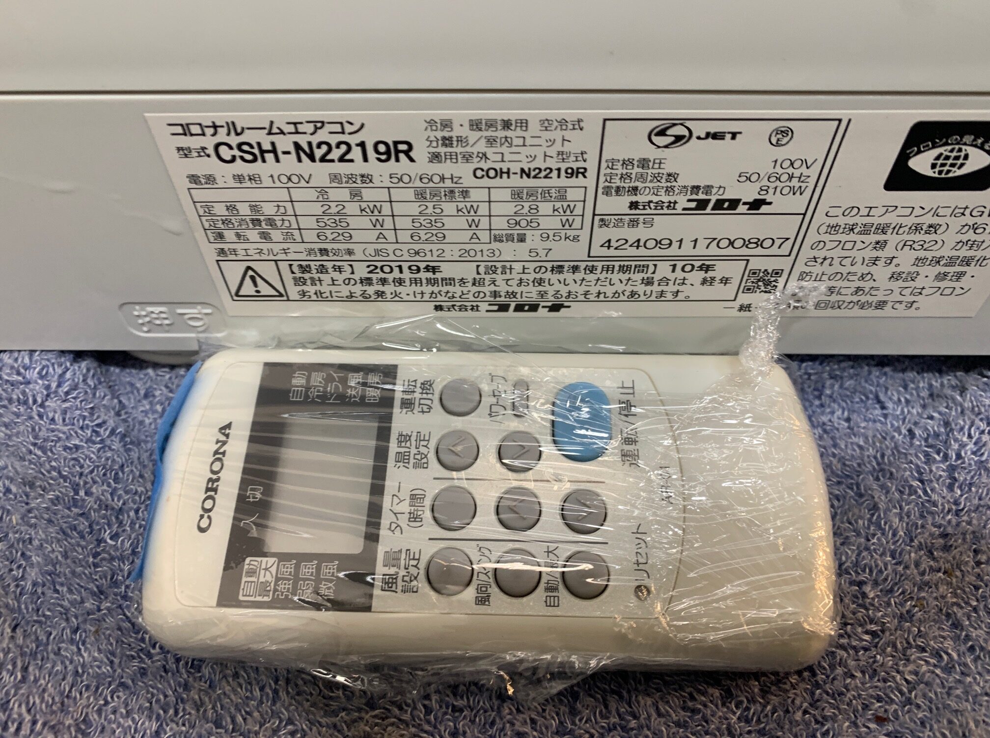 2.2KW冷暖エアコン 2019年製 コロナ 30,000円(33,000円税込)CSH-N2219R