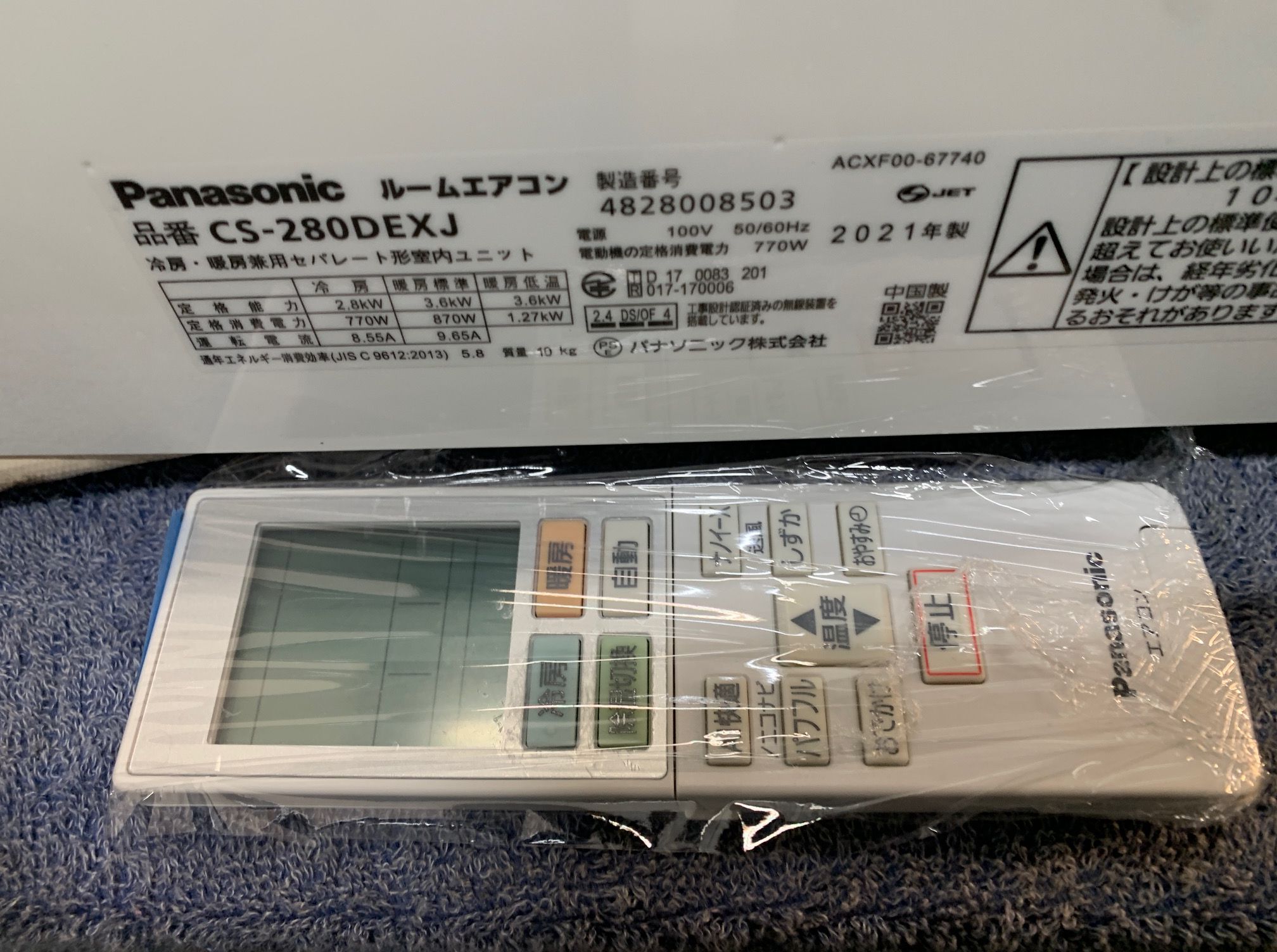 2.8KW冷暖エアコン 2021年製 パナソニック 52,000円(57,200円税込)CS-280DEEXJ☆自動フィルターお掃除機能 WI-Fi ナノイーX