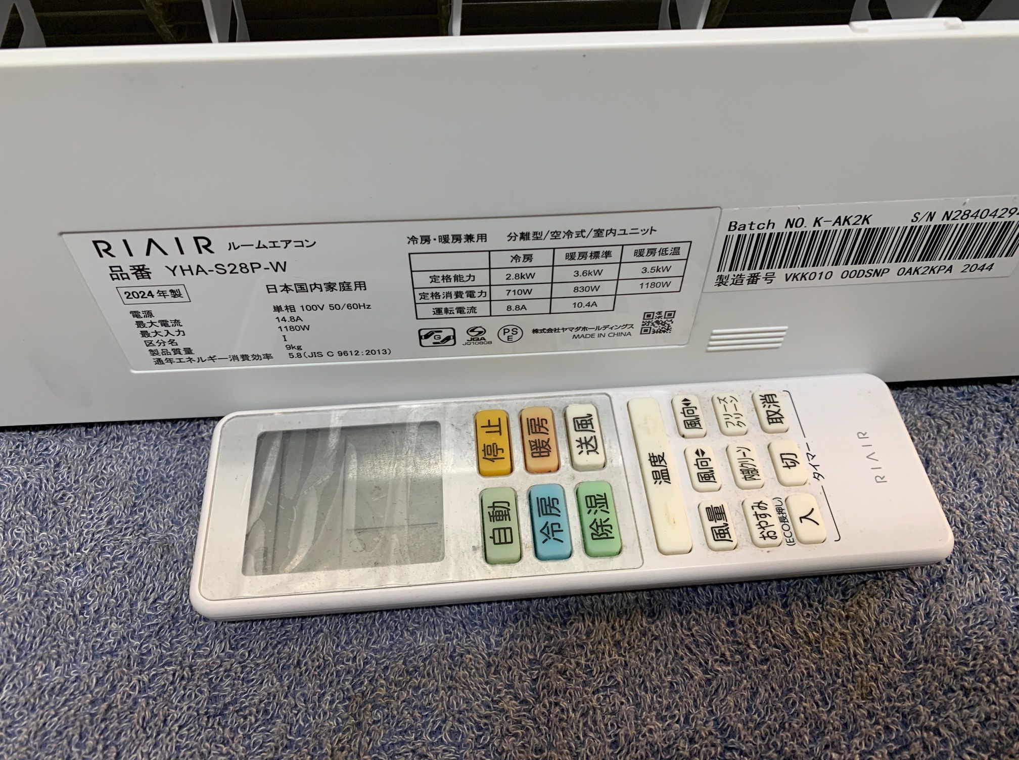 2.8KW冷暖エアコン 2024年製 ヤマダ電機 52,000円(57,200円税込)YHA-S28P※テープ跡あり