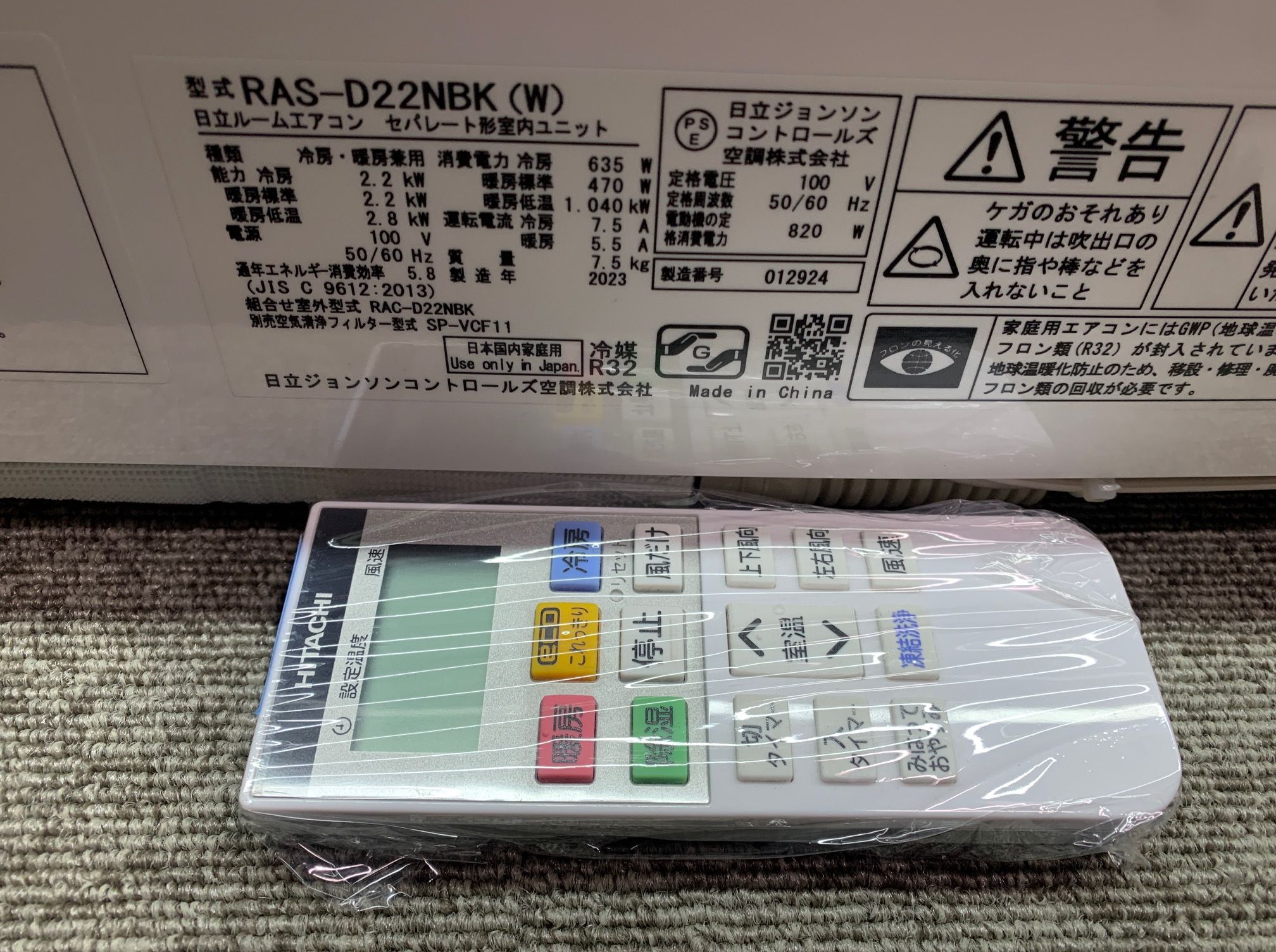 【付属品】室内機・背面パネル(画像外)・室外機(画像外)・リモコン