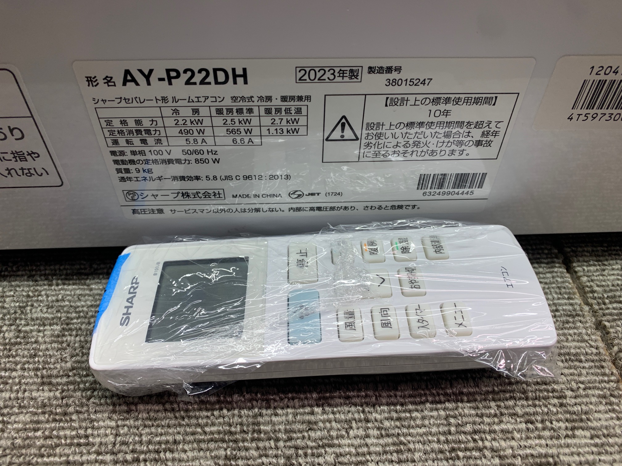 【付属品】室内機・背面パネル(画像外)・室外機(画像外)・リモコン