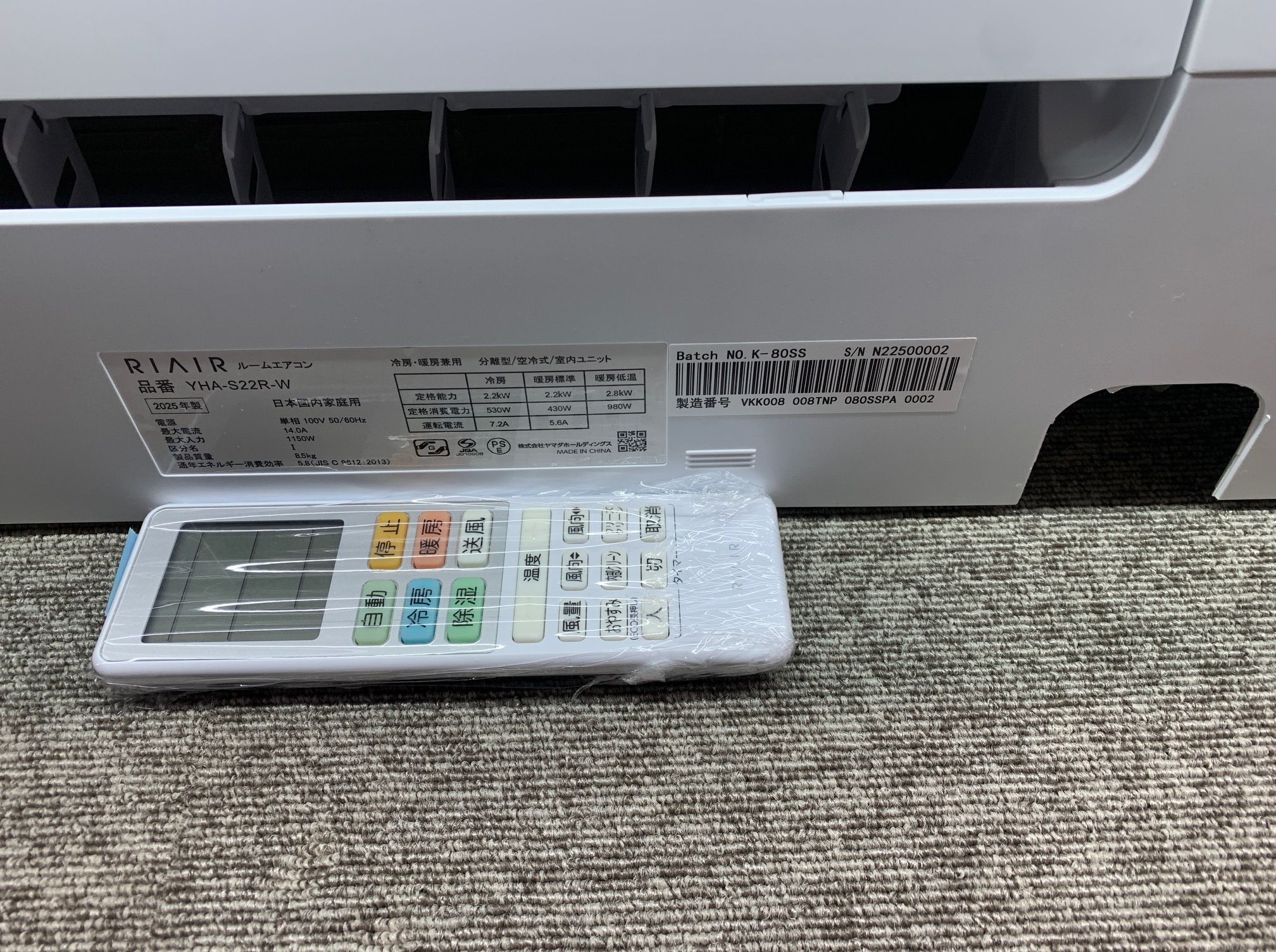 2.2KW冷暖エアコン 2025年製 ヤマダ電機 35,000円(38,500円税込)YHA-S22R☆使用歴浅