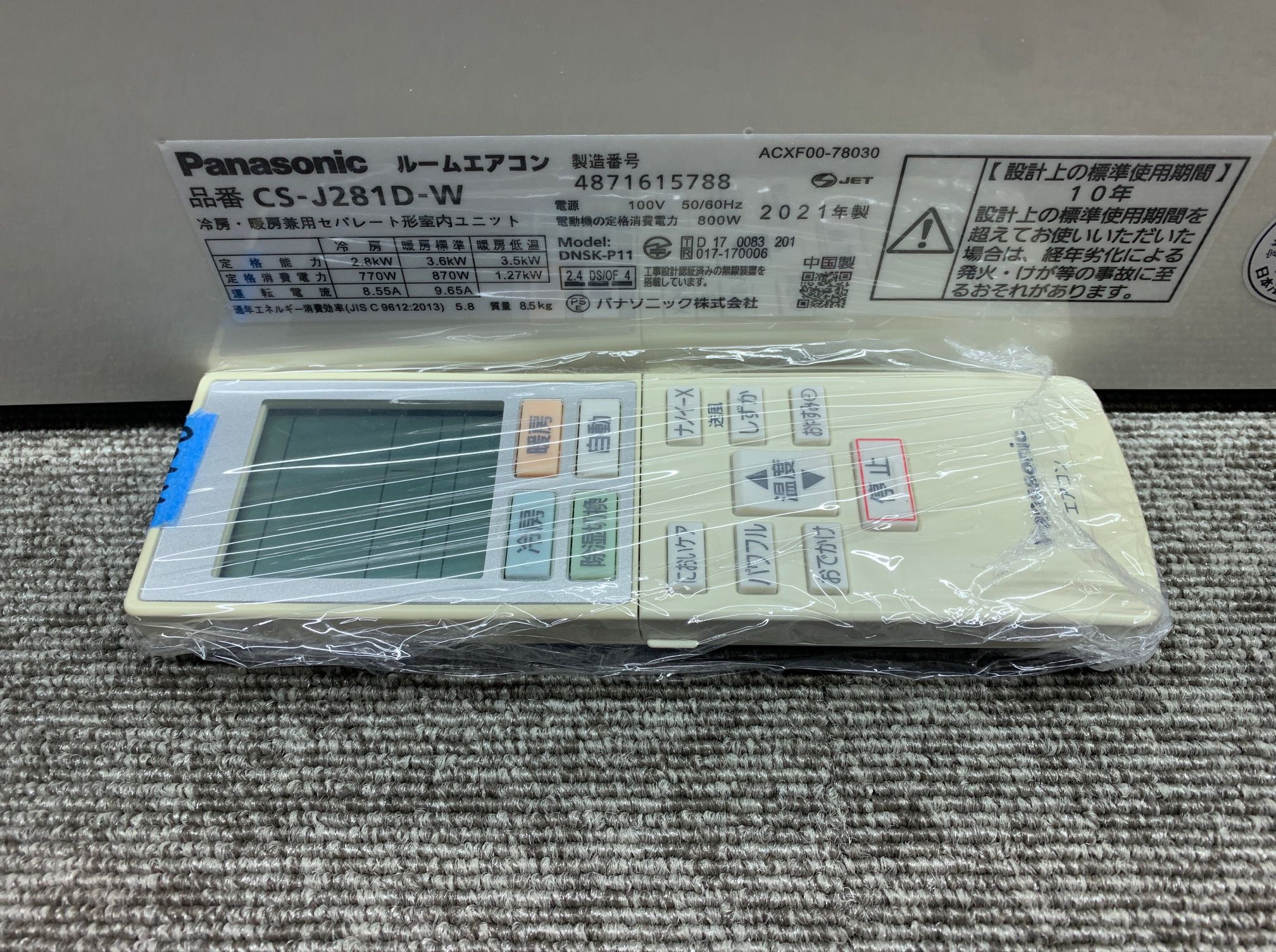 2.8KW冷暖エアコン 2021年製 パナソニック 48,000円(52,800円税込)CS-J281D※室内機に若干色ヤケ・リモコンに色ヤケあり☆ナノイーX Wi-Fi