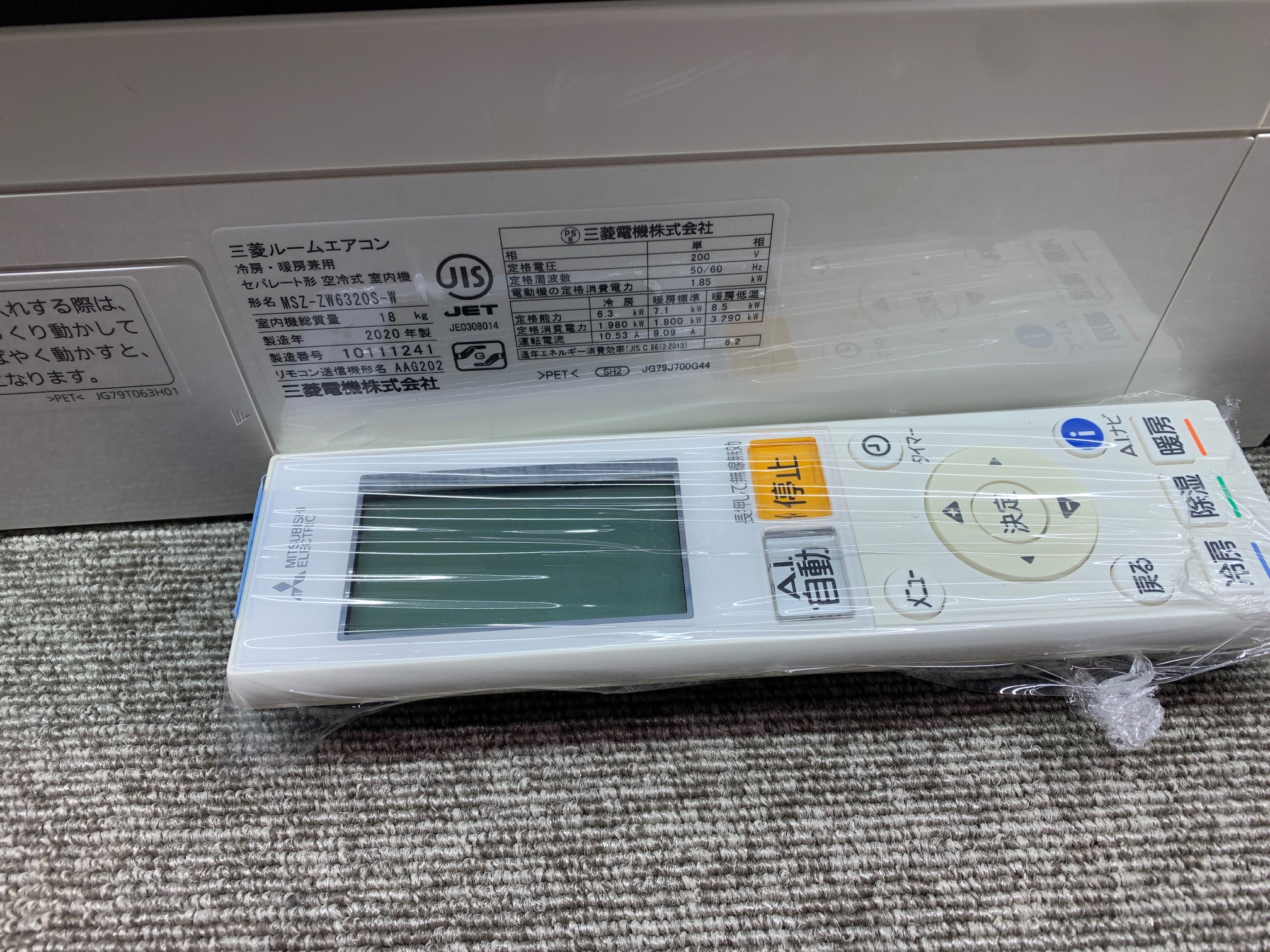 6.3KW冷暖エアコン 2020年製 三菱電機 MSZ-ZW6320S ☆自動フィルターお掃除機能 おまかせAI ※リモコンに色ヤケあり