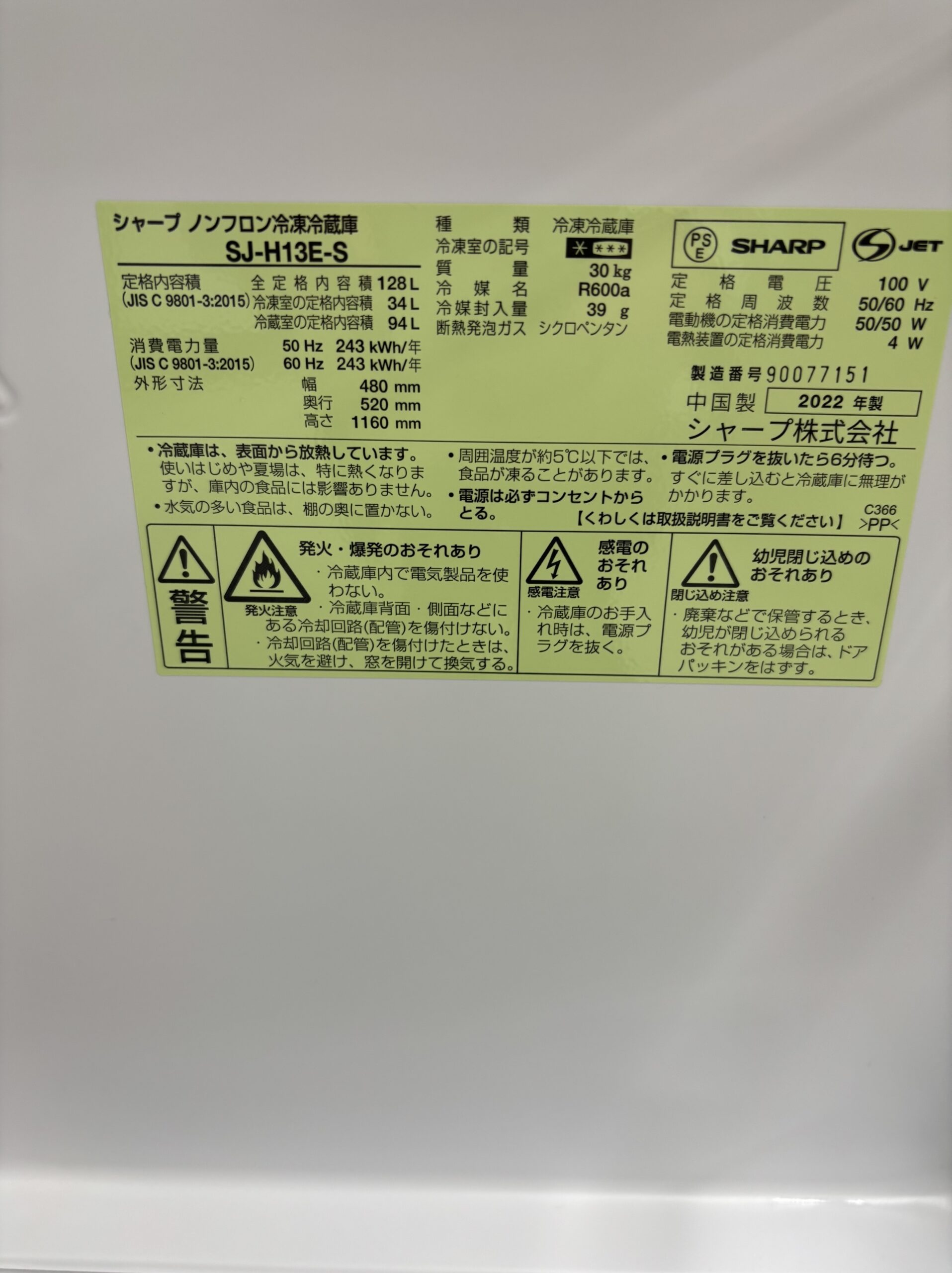 《売約》128L冷蔵庫 2022年製 ハイアールSJ-H13E