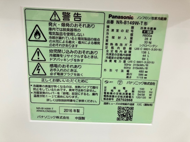 2024年8月24日 / 最終更新日 : 2024年9月2日 ec-republic 売約済み【完売】 《売約》138L冷蔵庫 2016年製 パナソニック NR-B149※小キズあり 【状態】B通常品※小キズあり ☆当店保証12か月付き リサイクルは1点もの。 ご来店お待ちしております♪ 商品のご予約・お問い合わせ 商品名(自動入力) お名前(ニックネーム可) (必須) メールアドレス (必須) お問い合わせ内容(配送希望の場合はお届け先の市区町村名、階数、エレベーターの有無もご記入下さい。) (必須)