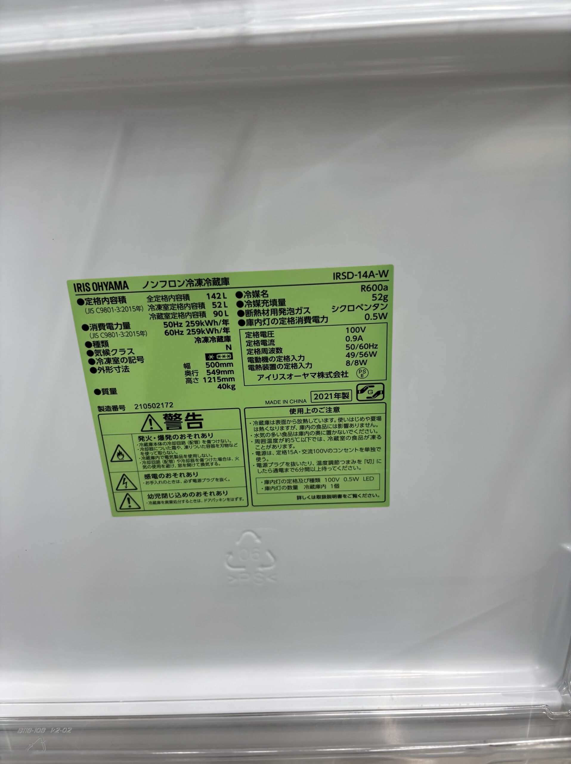 2025年11月1日 / 最終更新日 : 2026年2月3日 ec-republic 売約済み【完売】 《売約》142L冷蔵庫 2021年製 アイリスオーヤマ IRSD-14A※小キズあり 【状態】B通常品※小キズあり ☆当店保証12か月付き リサイクルは1点もの。 ご来店お待ちしております♪ 商品のご予約・お問い合わせ 商品名(自動入力) お名前(ニックネーム可) (必須) メールアドレス (必須) お問い合わせ内容(配送希望の場合はお届け先の市区町村名、階数、エレベーターの有無もご記入下さい。) (必須)