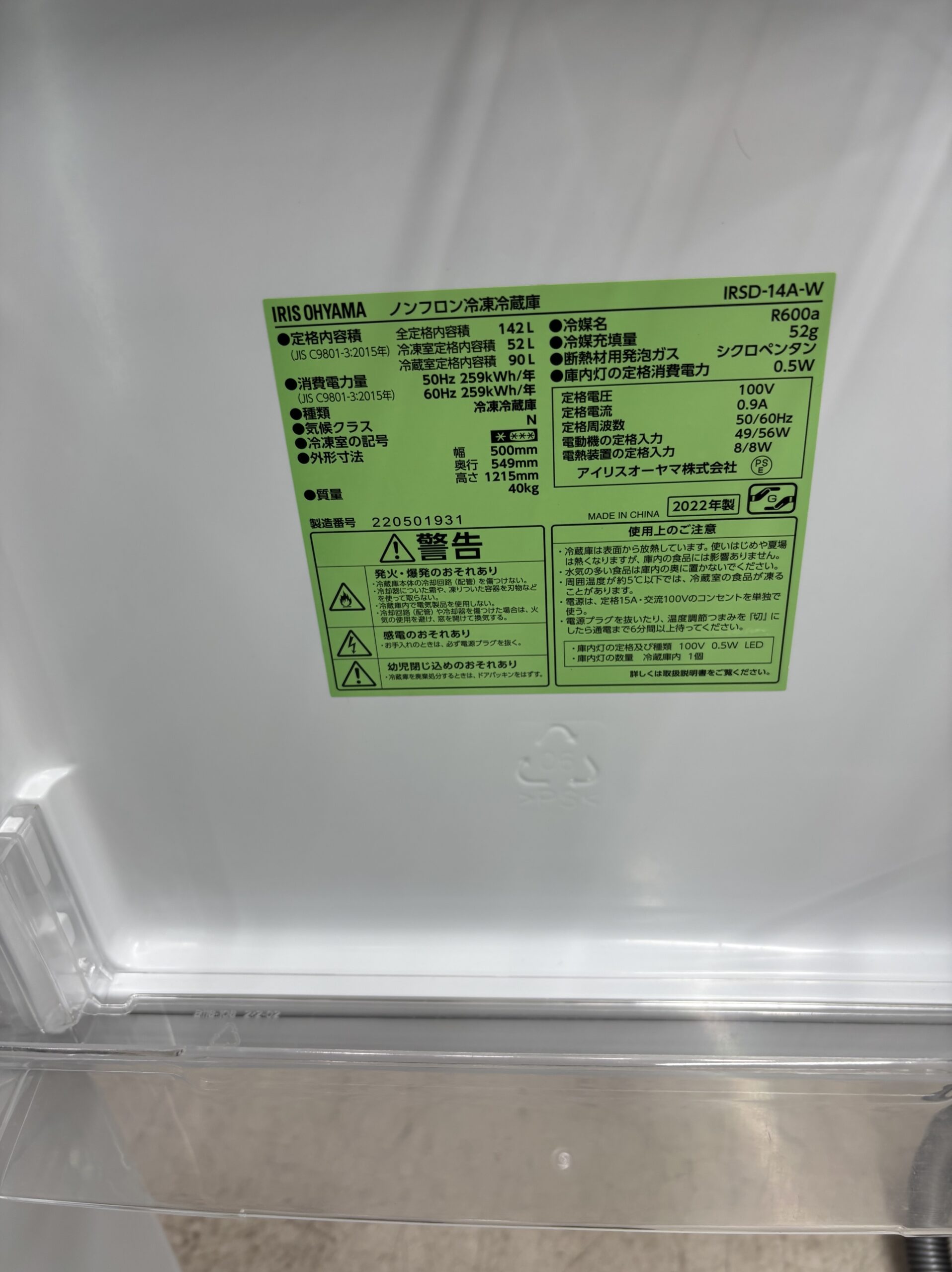 2025年9月21日 / 最終更新日 : 2025年9月21日 ec-republic 小型冷蔵庫(~199L) 142L冷蔵庫 2022年製 アイリスオーヤマ21,000円(23,100円税込) IRSD-14A※小キズ小ヘコミあり 【状態】B通常品※小キズ小ヘコミあり ☆当店保証12か月付き リサイクルは1点もの。 ご来店お待ちしております♪ 商品のご予約・お問い合わせ 商品名(自動入力) お名前(ニックネーム可) (必須) メールアドレス (必須) お問い合わせ内容(配送希望の場合はお届け先の市区町村名、階数、エレベーターの有無もご記入下さい。) (必須)