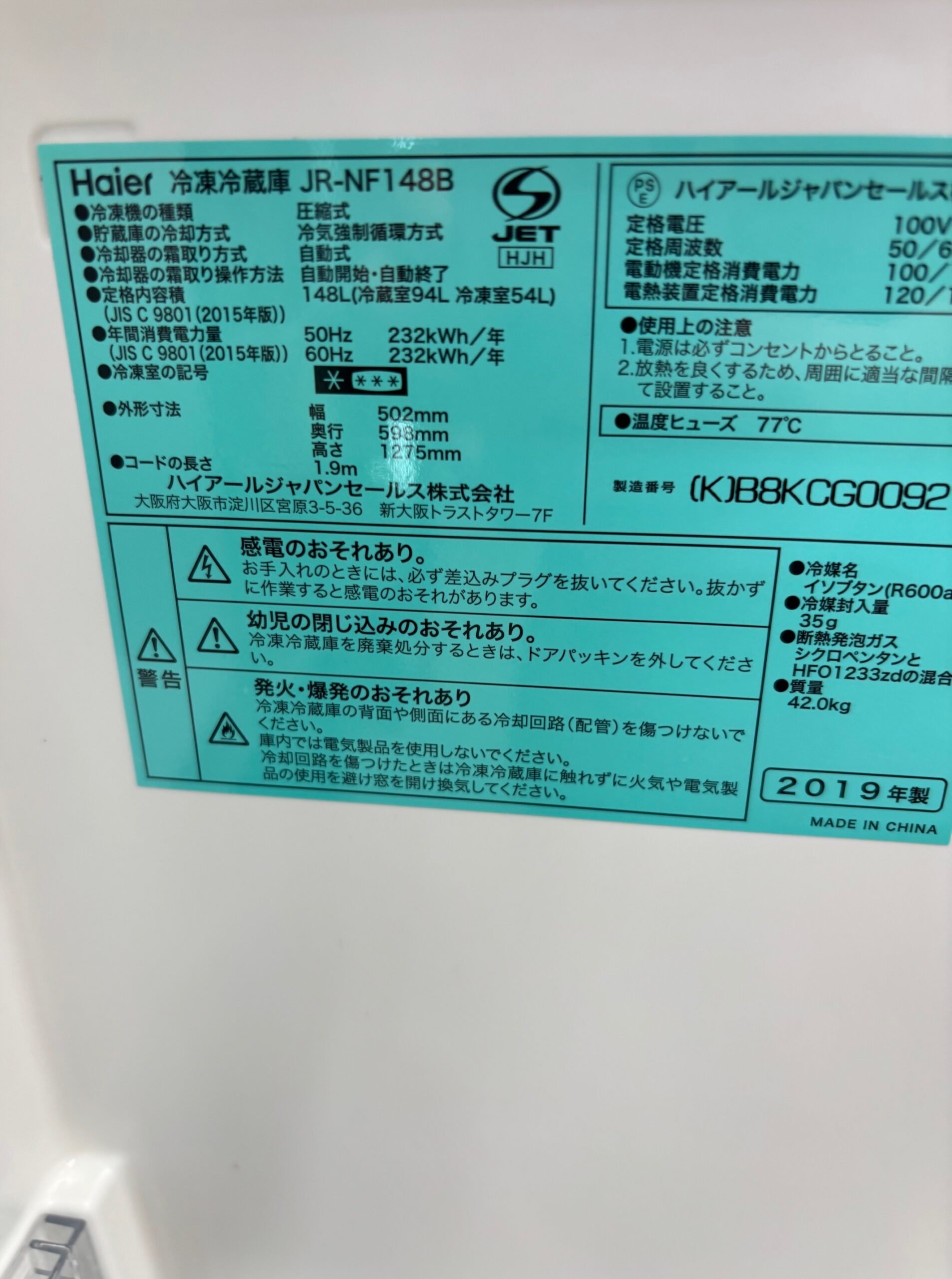 2025年9月22日 / 最終更新日 : 2025年10月6日 ec-republic 売約済み【完売】 《売約》148L冷蔵庫 2019年製 ハイアール JR-NF148B※小キズ小ヘコミあり 【状態】B通常品※小キズ小ヘコミあり ☆当店保証12か月付き リサイクルは1点もの。 ご来店お待ちしております♪ 商品のご予約・お問い合わせ 商品名(自動入力) お名前(ニックネーム可) (必須) メールアドレス (必須) お問い合わせ内容(配送希望の場合はお届け先の市区町村名、階数、エレベーターの有無もご記入下さい。) (必須)