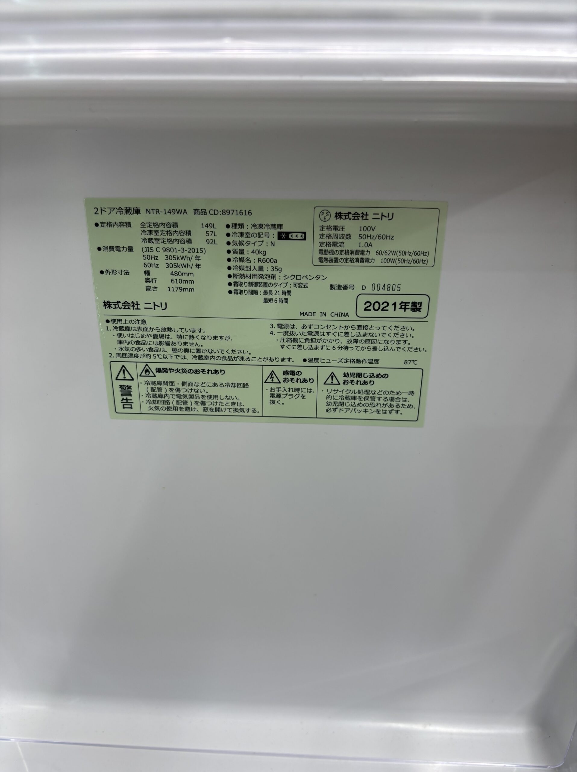 2025年7月29日 / 最終更新日 : 2025年9月15日 ec-republic 売約済み【完売】 《売約》149L冷蔵庫 2021年製 ニトリ NTR-149WA※小ヘコミ・色ヤケあり 【状態】B通常品※小ヘコミ・色ヤケあり ☆当店保証12か月付き リサイクルは1点もの。 ご来店お待ちしております♪ 商品のご予約・お問い合わせ 商品名(自動入力) お名前(ニックネーム可) (必須) メールアドレス (必須) お問い合わせ内容(配送希望の場合はお届け先の市区町村名、階数、エレベーターの有無もご記入下さい。) (必須)
