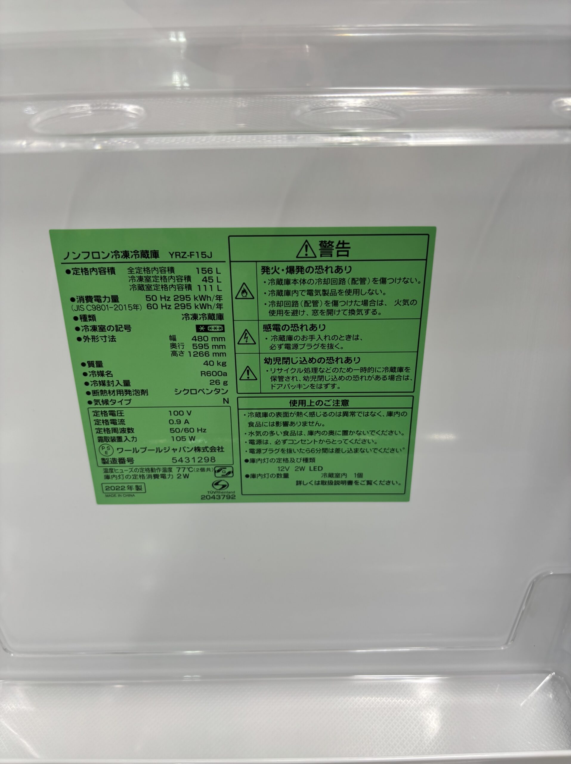 2025年11月1日 / 最終更新日 : 2025年11月1日 ec-republic 小型冷蔵庫(~199L) 156L冷蔵庫 2022年製 ヤマダ電機 23,000円(25,300円税込)YRZ-F15J※小キズ、小ヘコミあり 【状態】B通常品※小キズ、小ヘコミあり ☆当店保証12か月付き リサイクルは1点もの。 ご来店お待ちしております♪ 商品のご予約・お問い合わせ 商品名(自動入力) お名前(ニックネーム可) (必須) メールアドレス (必須) お問い合わせ内容(配送希望の場合はお届け先の市区町村名、階数、エレベーターの有無もご記入下さい。) (必須)