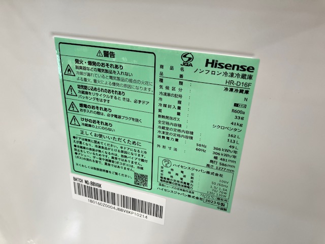 2024年12月17日 / 最終更新日 : 2025年3月21日 ec-republic 売約済み【完売】 《売約》162L冷蔵庫 2023年製 ハイセンス HR-D16F※扉に小キズあり 【状態】B通常品※扉に小キズあり ☆当店保証12か月付き リサイクルは1点もの。 ご来店お待ちしております♪ 商品のご予約・お問い合わせ 商品名(自動入力) お名前(ニックネーム可) (必須) メールアドレス (必須) お問い合わせ内容(配送希望の場合はお届け先の市区町村名、階数、エレベーターの有無もご記入下さい。) (必須)