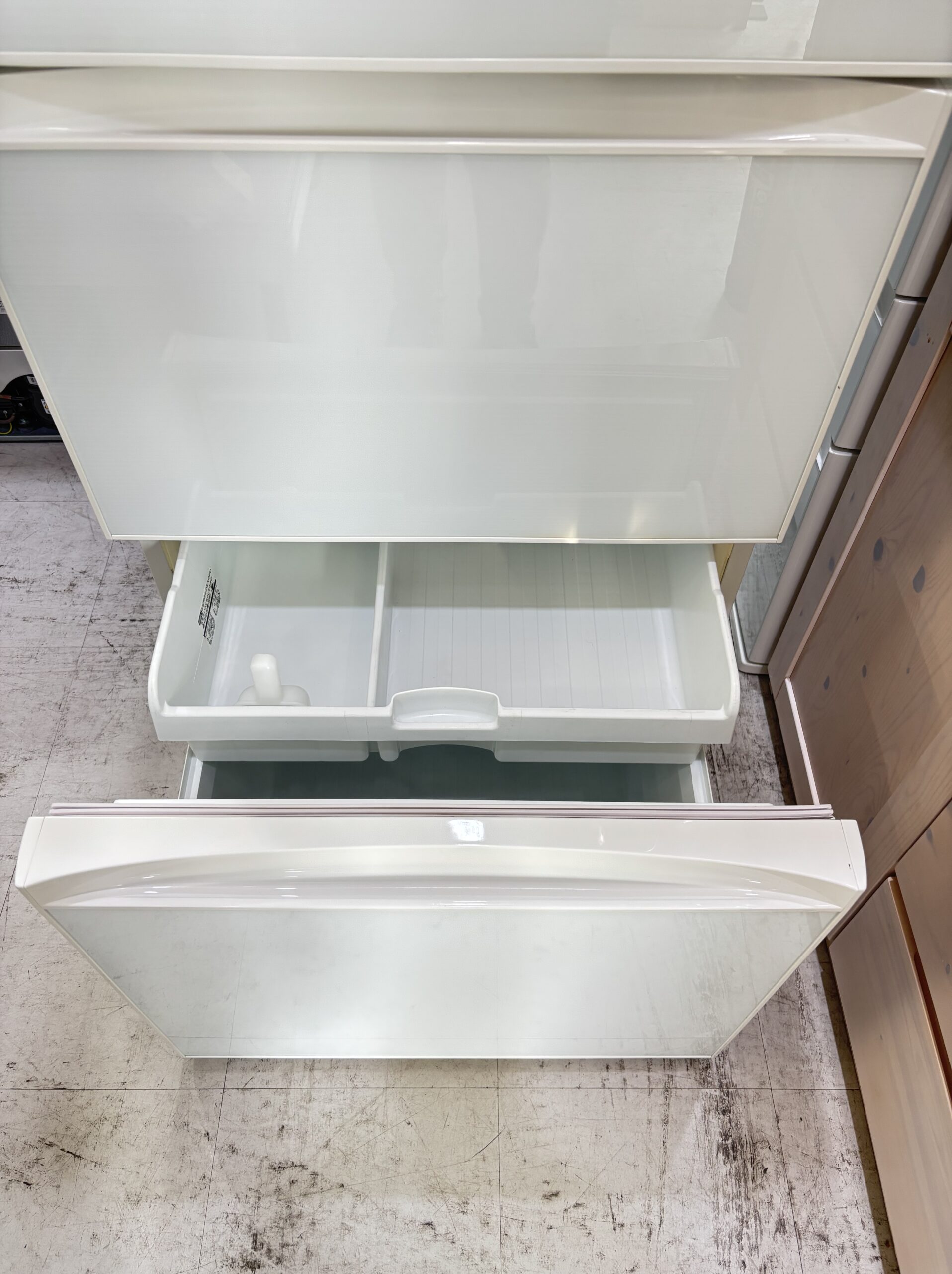 【状態】B通常品※野菜室ケースシミ、小キズあり、仕切り板ヒビあり